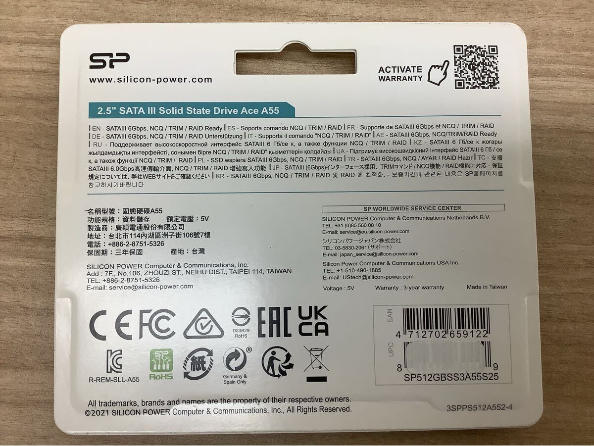 Silicon Power A55 512GB SSD SATA3 2.5インチ 7mm 超薄型 国内正規品 未開封 現状品