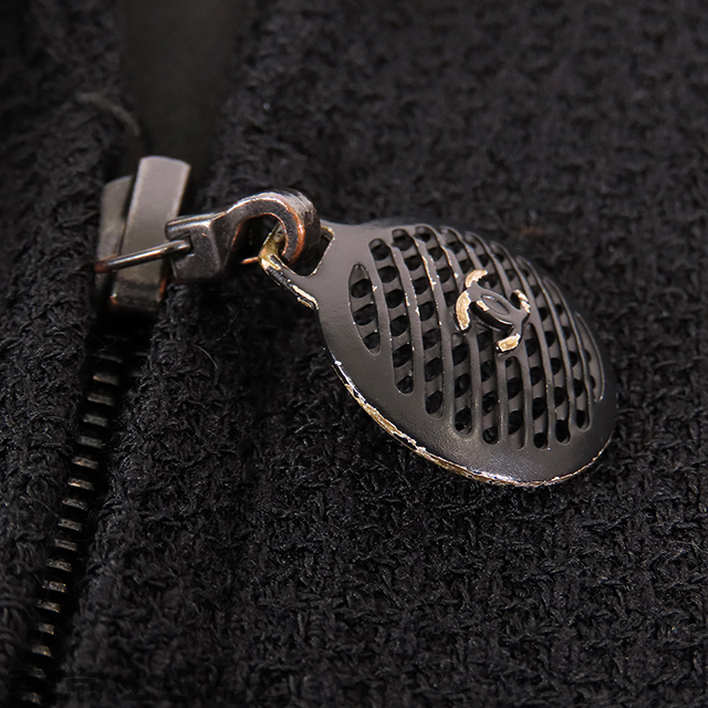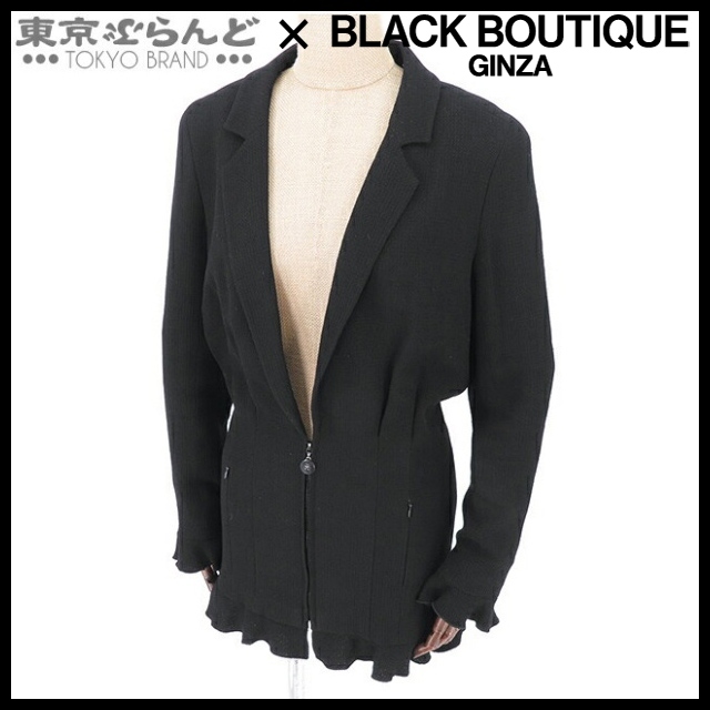 101785154 シャネル フリルジャケット P19603V11211 ブラック ウール レーヨン 02P フロントジップ 38 テーラードジャケット レディース