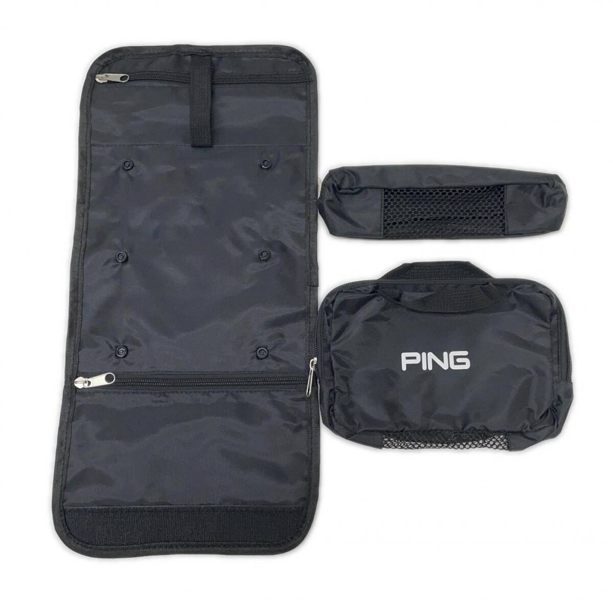 ●カートに取り付けて使ったり、カートバッグの収納ケースとして使ったりと使い勝手の良いポーチです。中のバッグとメッシュポーチは取り外して単品でお使い頂けます