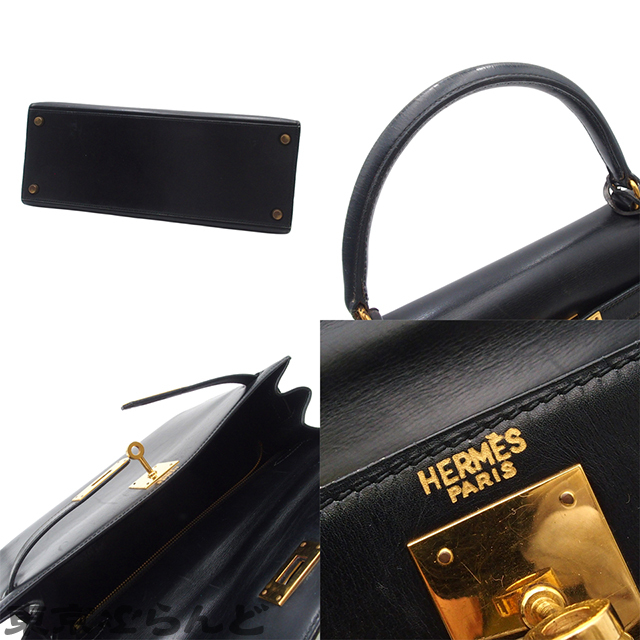 101824914 エルメス HERMES ケリー28 J刻印 ブラック ゴールド金具 ボックスカーフ 外縫 ヴィンテージ ハンドバッグ レディース
