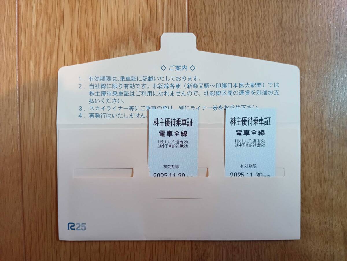 ☆ 2枚セット 京成電鉄株主優待乗車証 2025年11月30日まで【送料込】 ☆
