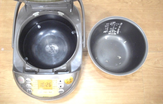 内釜のフッ素加工がはがれると、ご飯がこびりつきやすくなりますが、炊飯や保温性能、衛生面に支障はありません。