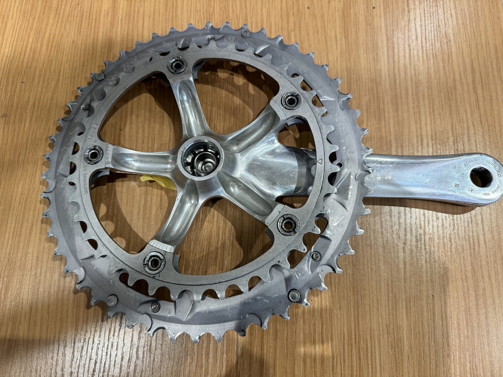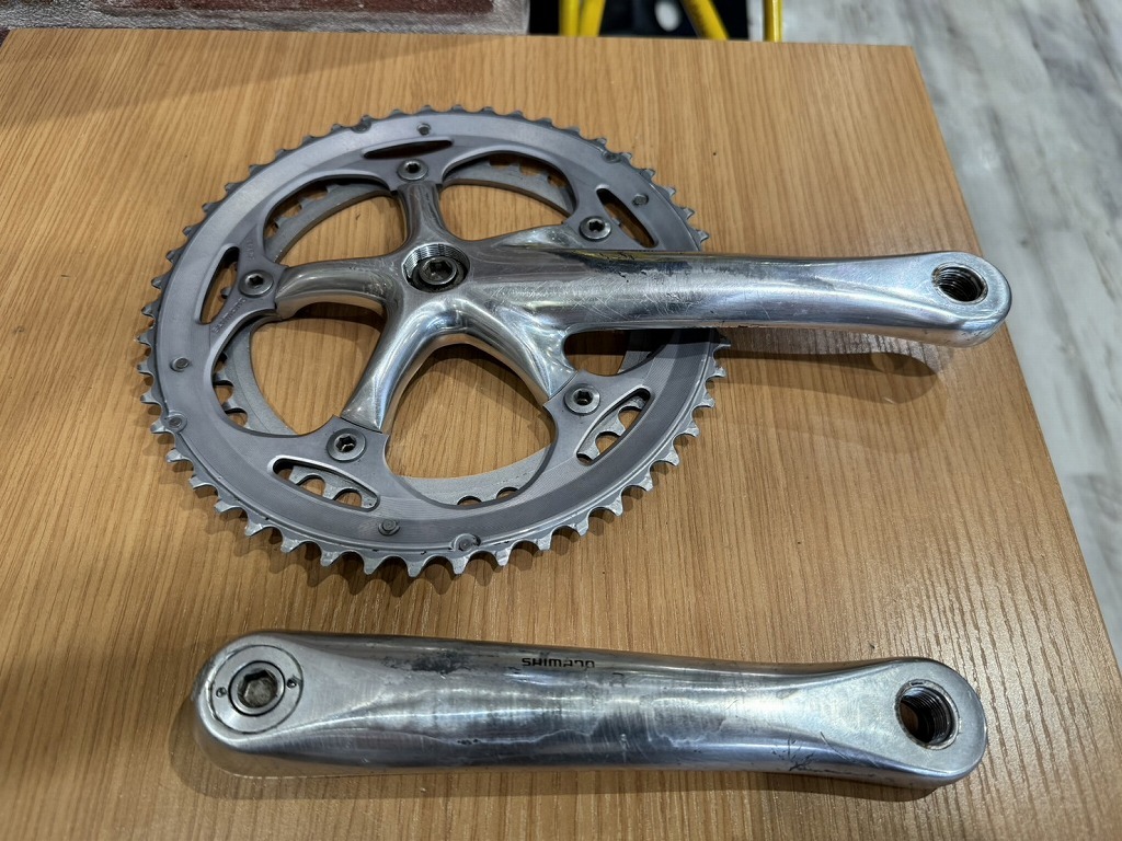 使用に伴うロゴ印字のかすれや傷などがありますが、中古クランクセットとしてお使いいただけるお品物です。グレード:ULTEGRA