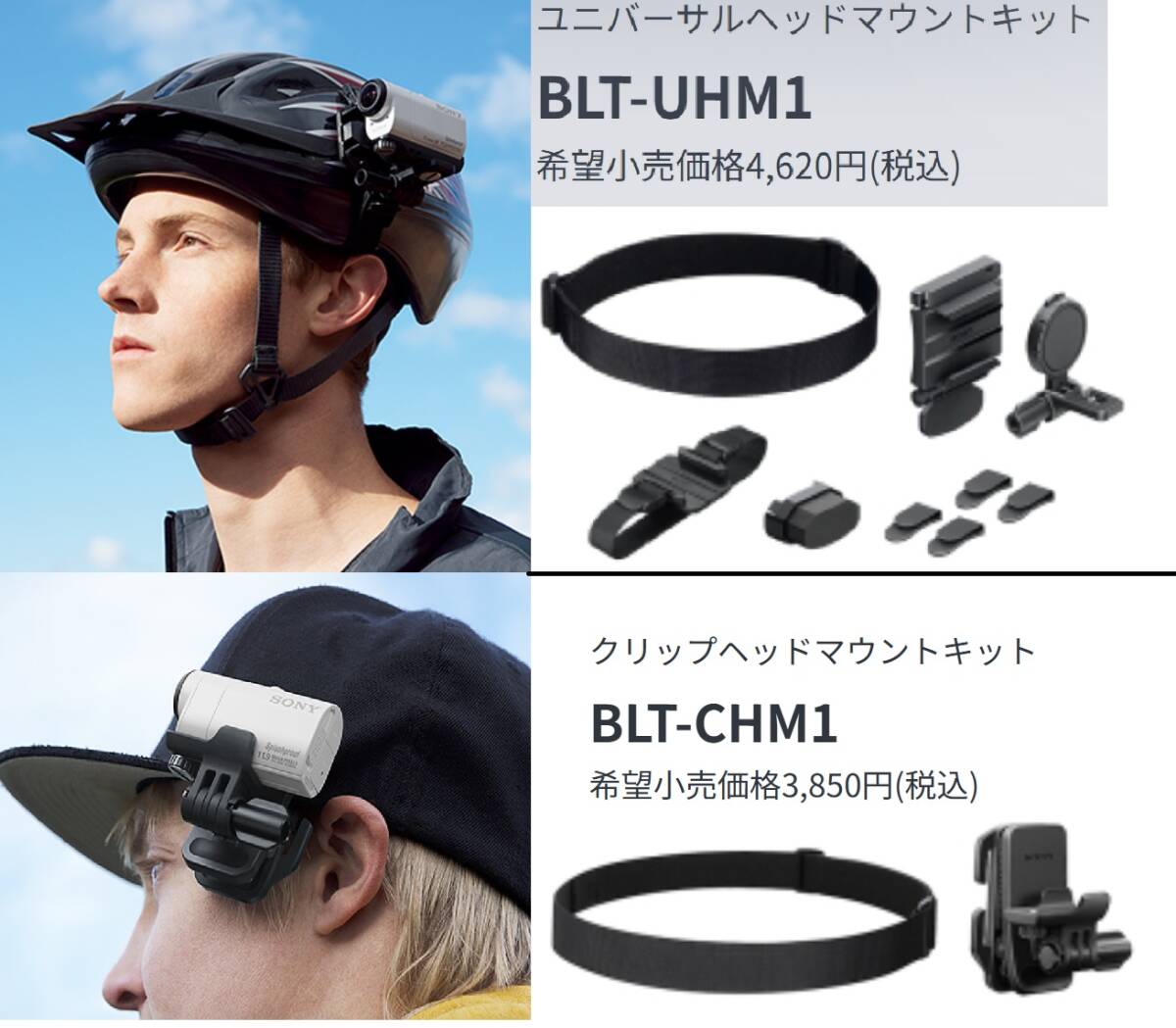 ・クリップヘッドマウントキット BLT-CHM1 ※メーカー希望小売価格3,850円(税込)、頭部やキャップに装着する小型・軽量アクセサリー