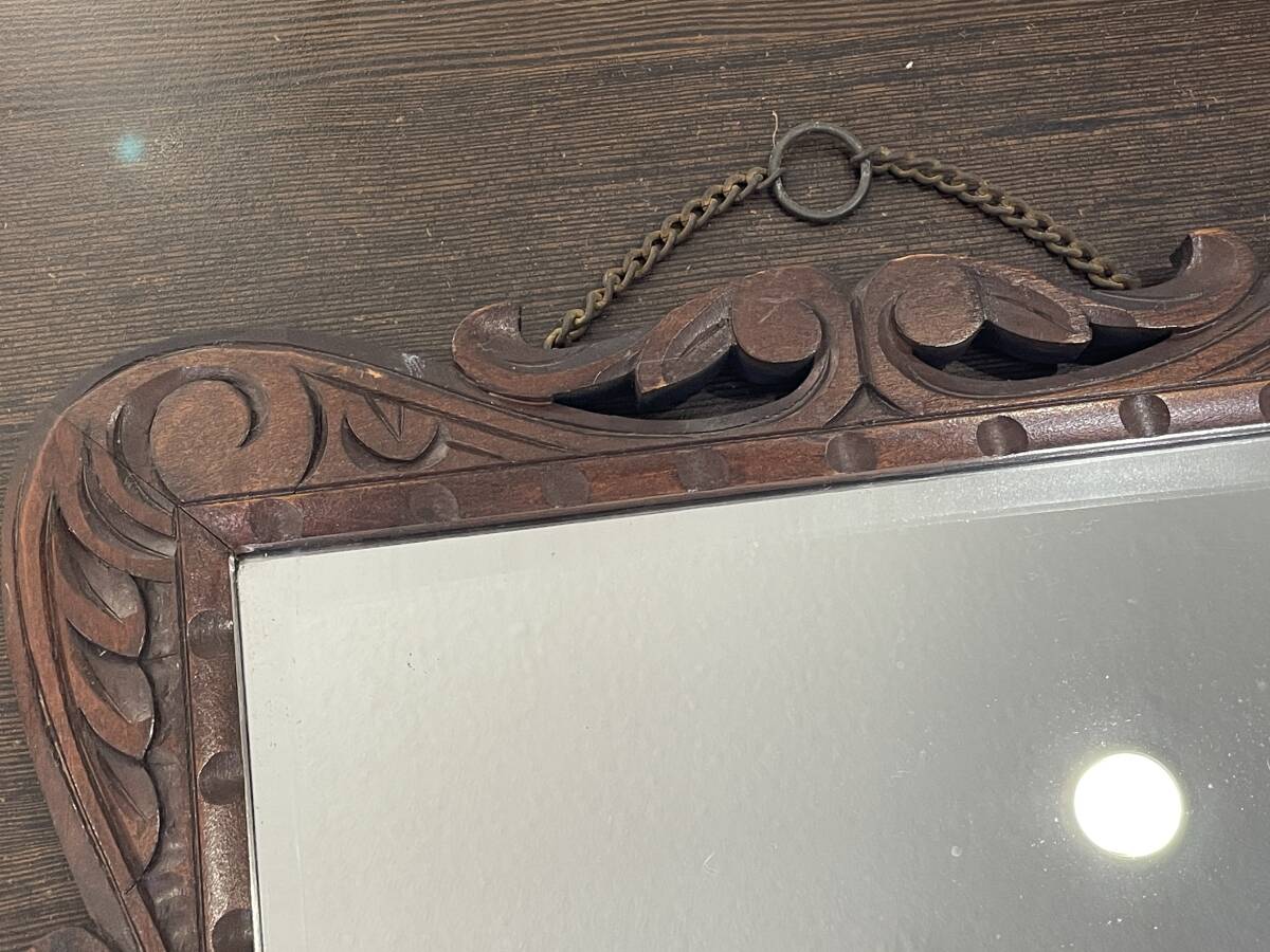 ★【アンティーク ウォールミラー インテリア 壁掛け式鏡】壁掛け 木製鏡 レトロ ミラー★寸法:約43×33cm