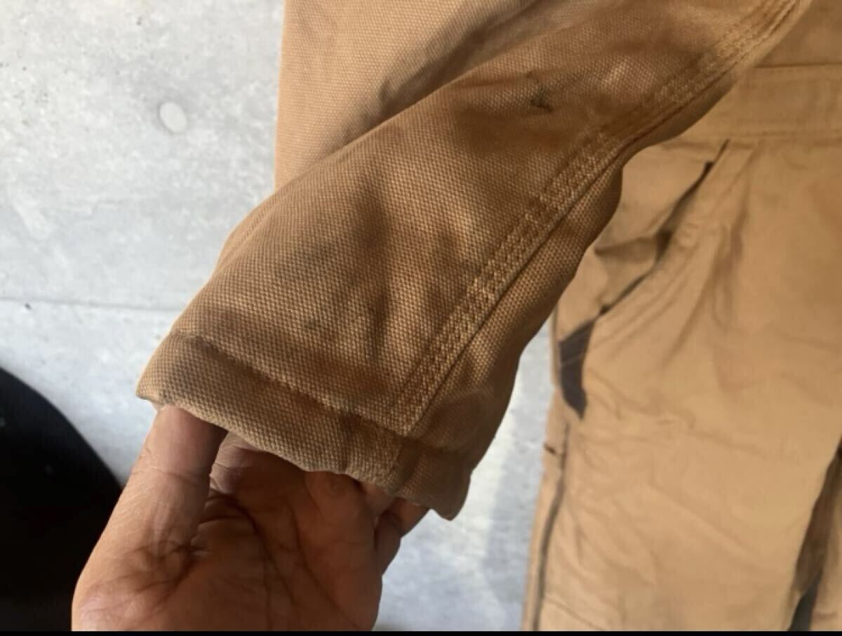 ◆ 今年の冬に古着で購入し2、3回着ました。参考までに私の体格は170cmの60kgですが、ちょい大きい位でした。写真の通り袖口や膝部分に汚れあります。