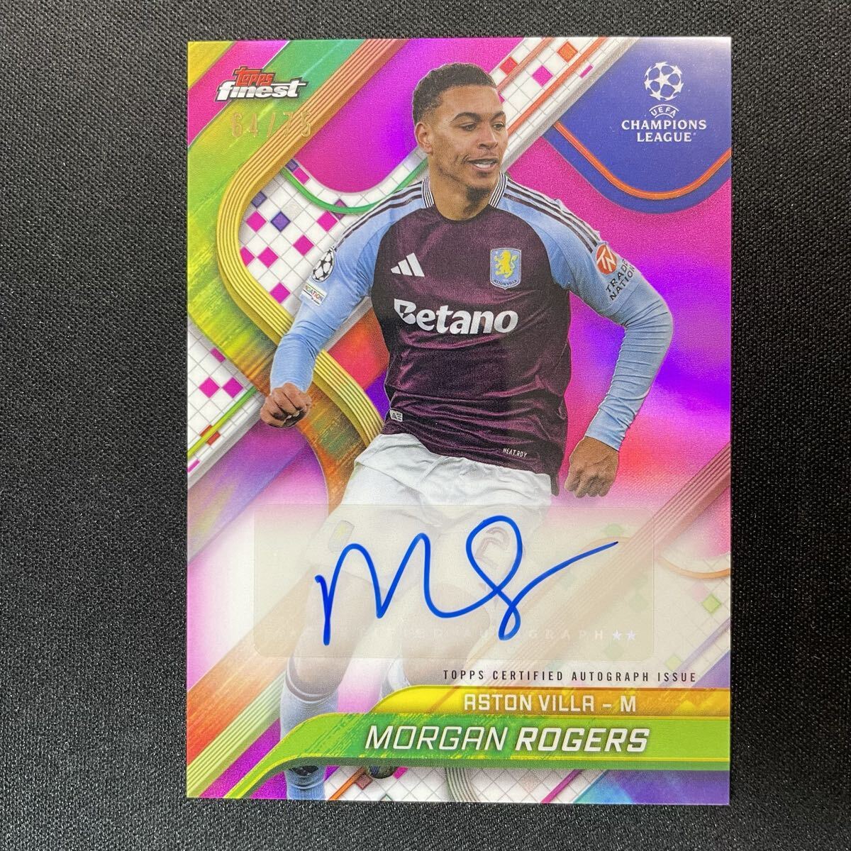 2024-25 Topps Finest UEFA Morgan Rogers Auto Aston Villa /75 直筆サインカード モーガン・ロジャーズ