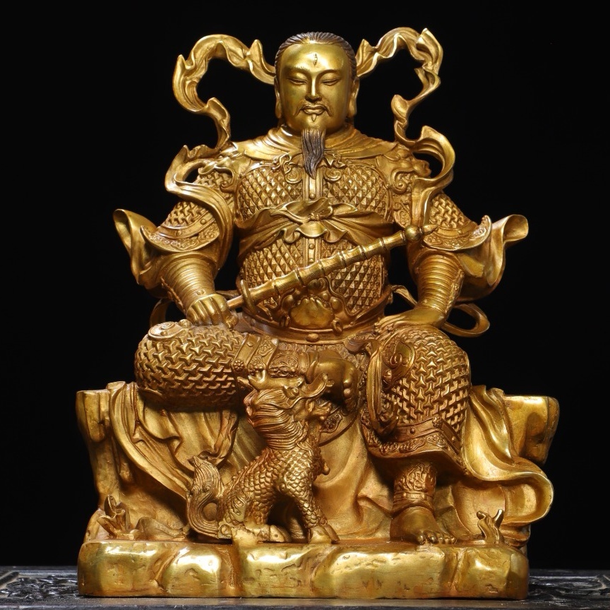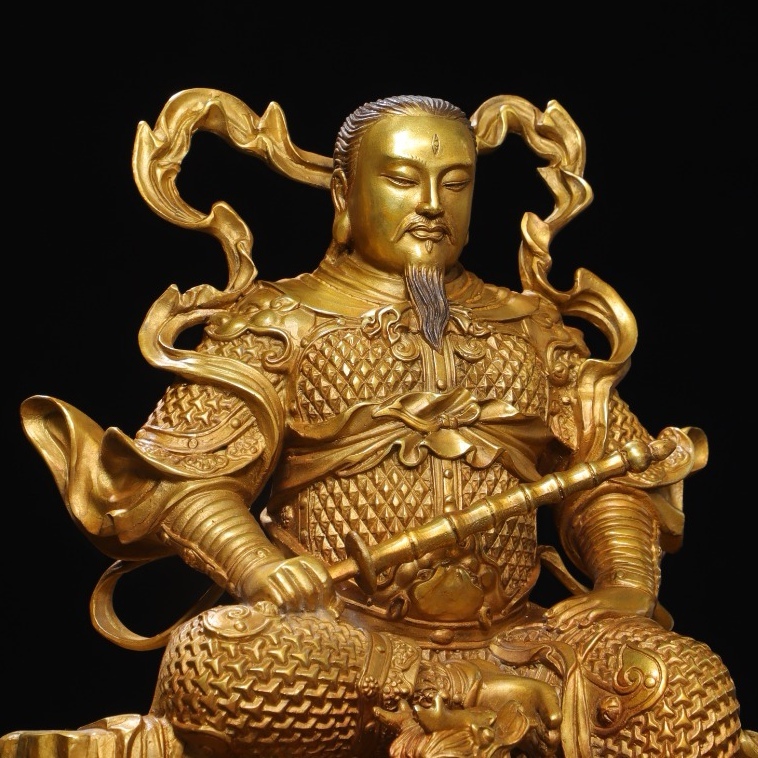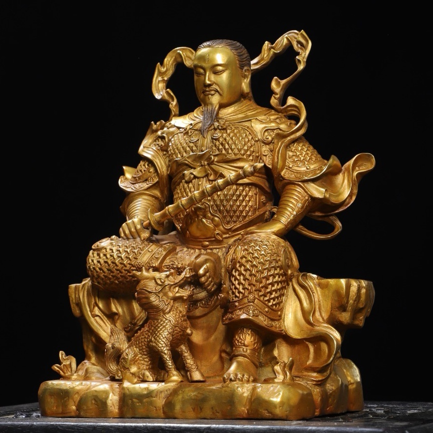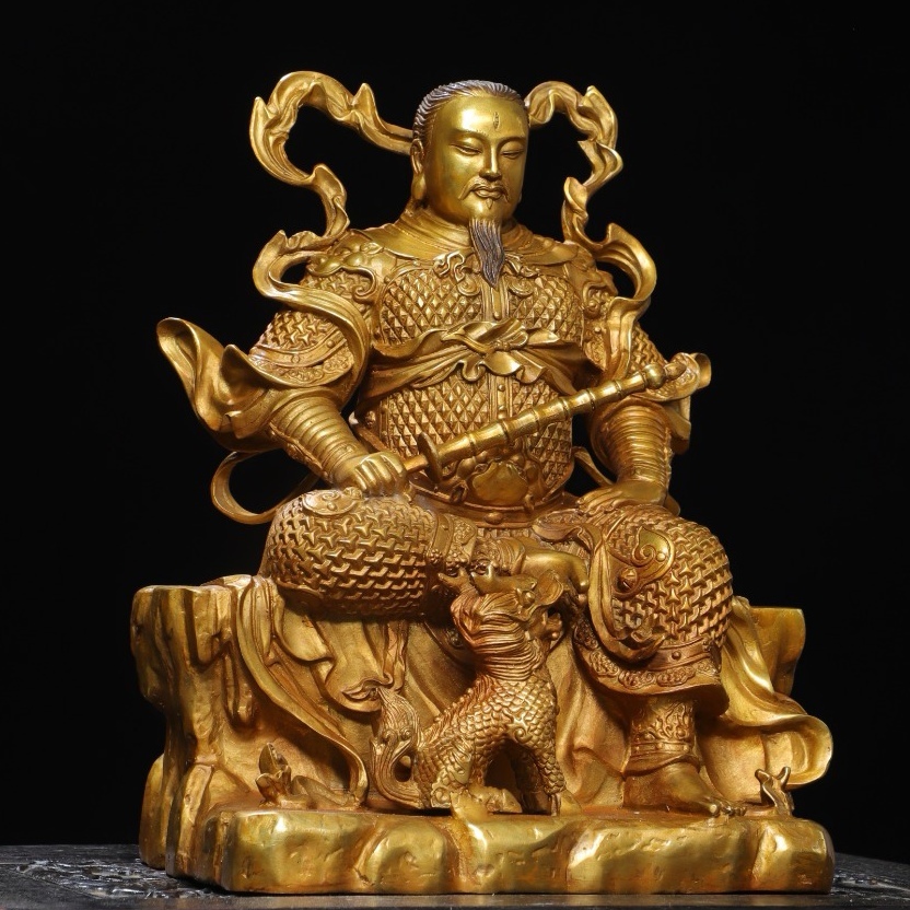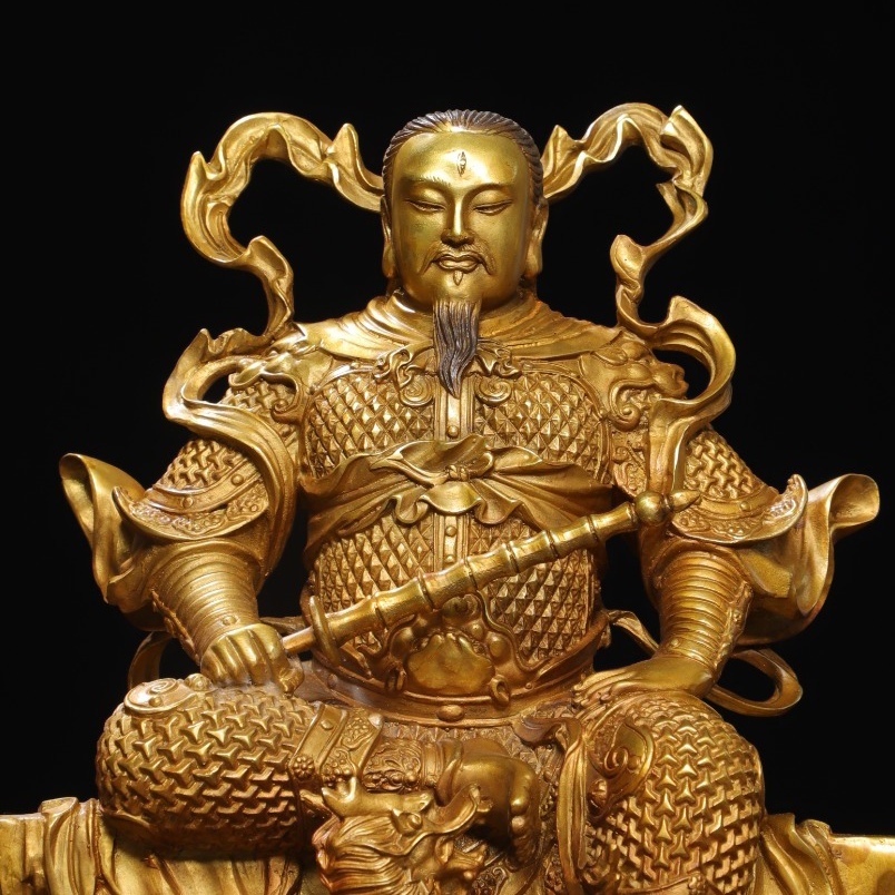 *珍品旧蔵* 大明 永樂年製 銅塗金【真武雷祖】 仏像 奉納されていた 供養品 銅製 銅器 極細工 中国古玩 骨董品 古美味 H410