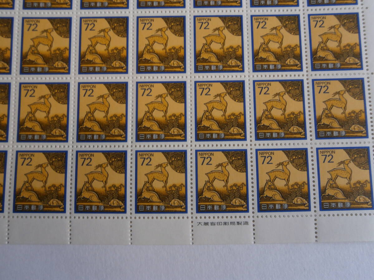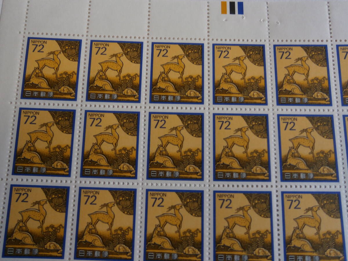 日本普通切手未使用、新動植物国宝図案1989年シリーズ72円シカ百面シート美品。真ん中に折れがあります。特に問題ないと思います。写真を優先してください。NR,NCでお願いいたします。同梱可能ですが送料が変わる場合があります。連絡は早めにお願い致します。