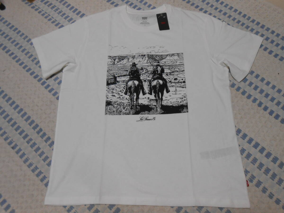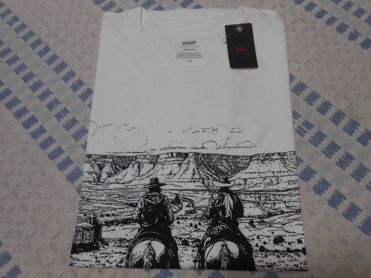 新品!リーバイス リラックスフィット Tシャツ カウボーイデザイン ホワイト 日本サイズXL 161431946 黒プリント 501XX ランチ