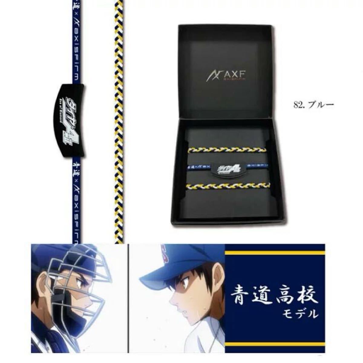■アクセフがダイヤのA(act2)とついにコラボ!!「青道高校」「薬師高校」「稲城実業」の3校がモデルのカラーバンドはそれぞれのイメージカラーにロゴが入った完全オリジナル!高級感のあるパッケージもダイヤのAコラボだけの特別仕様となっています。