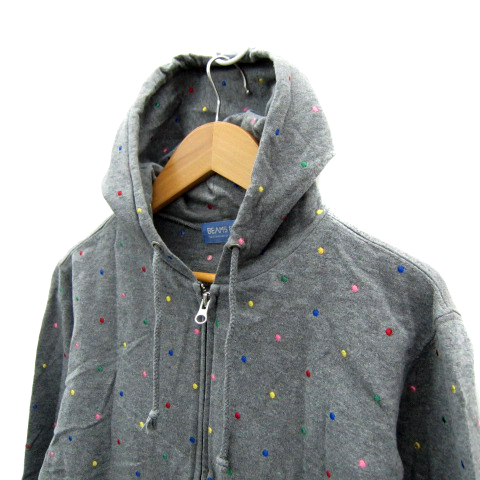 ビームスボーイ BEAMS BOY ジャケット パーカー ミドル丈 スウェット ドット柄 水玉柄 ダブルジップ マルチカラー グレー レディース