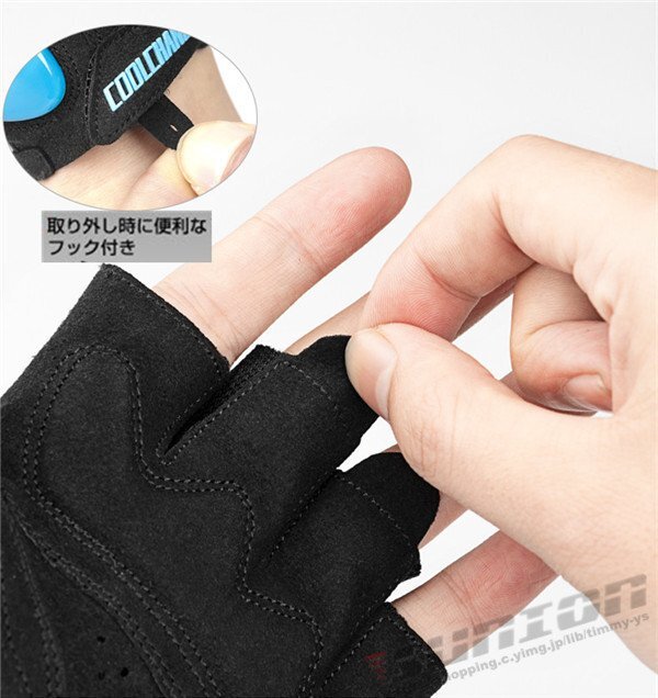 【商品特徴】◎肉厚パッドで振動による負荷を軽減しますので、長時間でも快適に走行可能です。◎手のひら中央部にメッシュ素材を設けグローブ内の蒸れを防ぎ通気性の良い状態を確保します。◎中指と薬指部にフックが付いていますので、かんたんに取り外しできます。◎サイクリング、釣り、登山、アウトドア等のあらゆるスポーツをはじめ、 ドライブ、キャンプ等の様々なシーンでご利用いただけます。■ サイクリンググローブ■(手のひら部)素材:ポリエステル ポリウレタン■(手の甲部)素材:ナイロン スパンデックス■サイズ内容:手の平の幅 単位:cm。