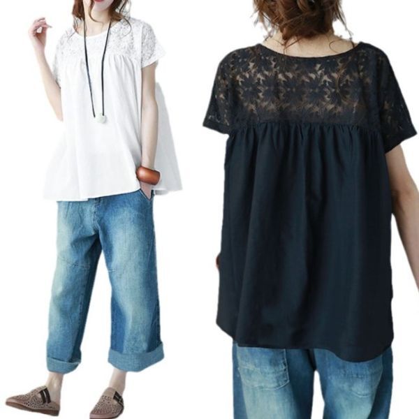 フェミニン感あふれる花柄レースの 組み合わせたティーシャツです。