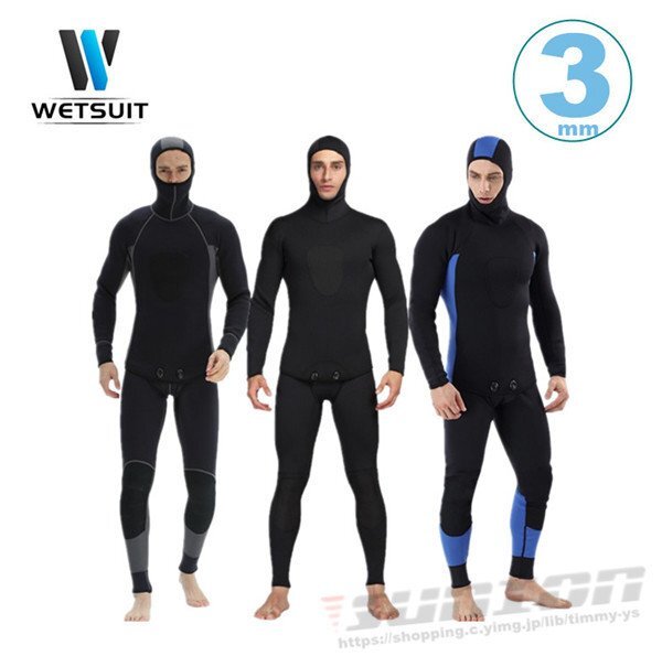 ウェットスーツ 3mm フード付き 2ピース ダイビング スピアフィッシング スキューバ フルスーツ マリンスポーツ シュノーケル