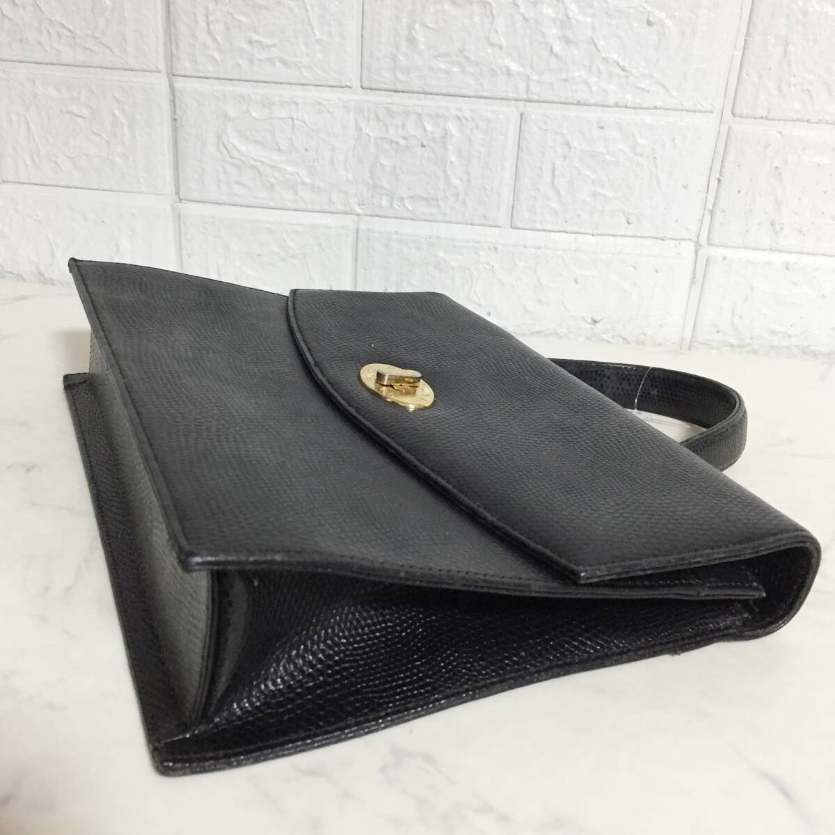 no37620 UNGARO ウンガロ 本革 レザー エナメル リザード型押 フォーマル 2way ショルダー ハンド バッグ