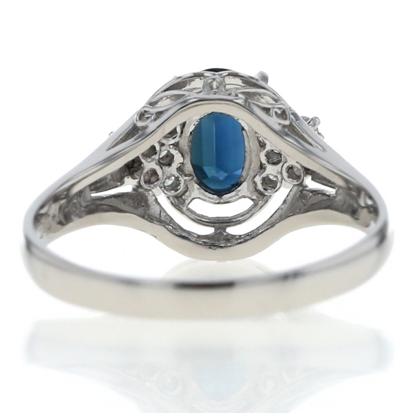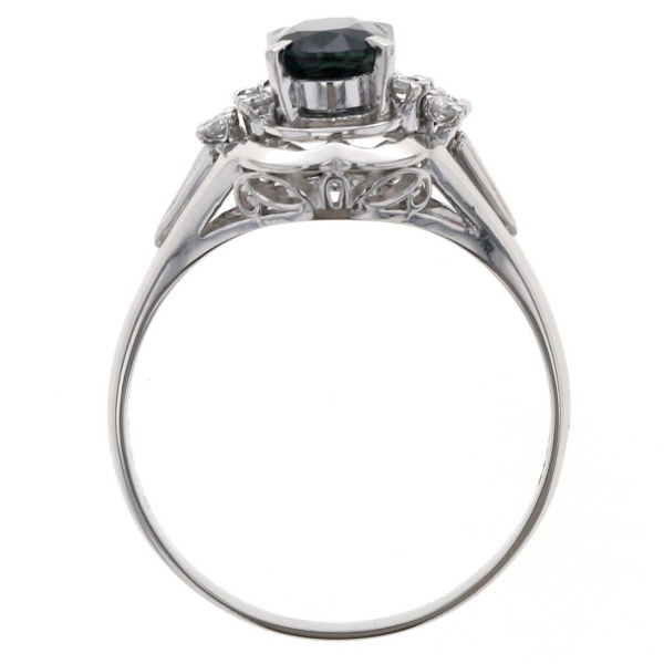 商品紹介 | 上質なプラチナの地金に、オーバルカットが施された深いブルーのサファイアをセンターに配したリングです。 サファイアのサイドには、ダイヤモンドが丁寧にセッティングされており、メインストーンの輝きを一層引き立てています。 リングのアーム側面には、繊細で装飾的なアラベスク風の透かし模様が施されており、細部にまでこだわりが感じられる優美なデザインです。 |