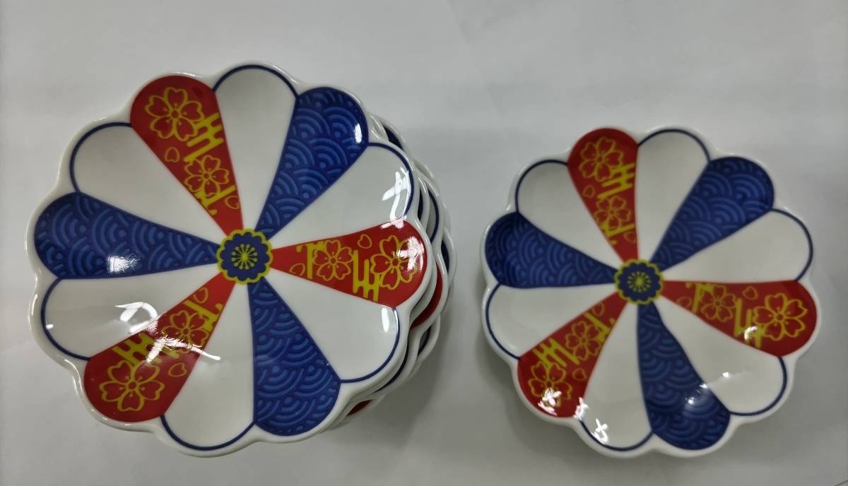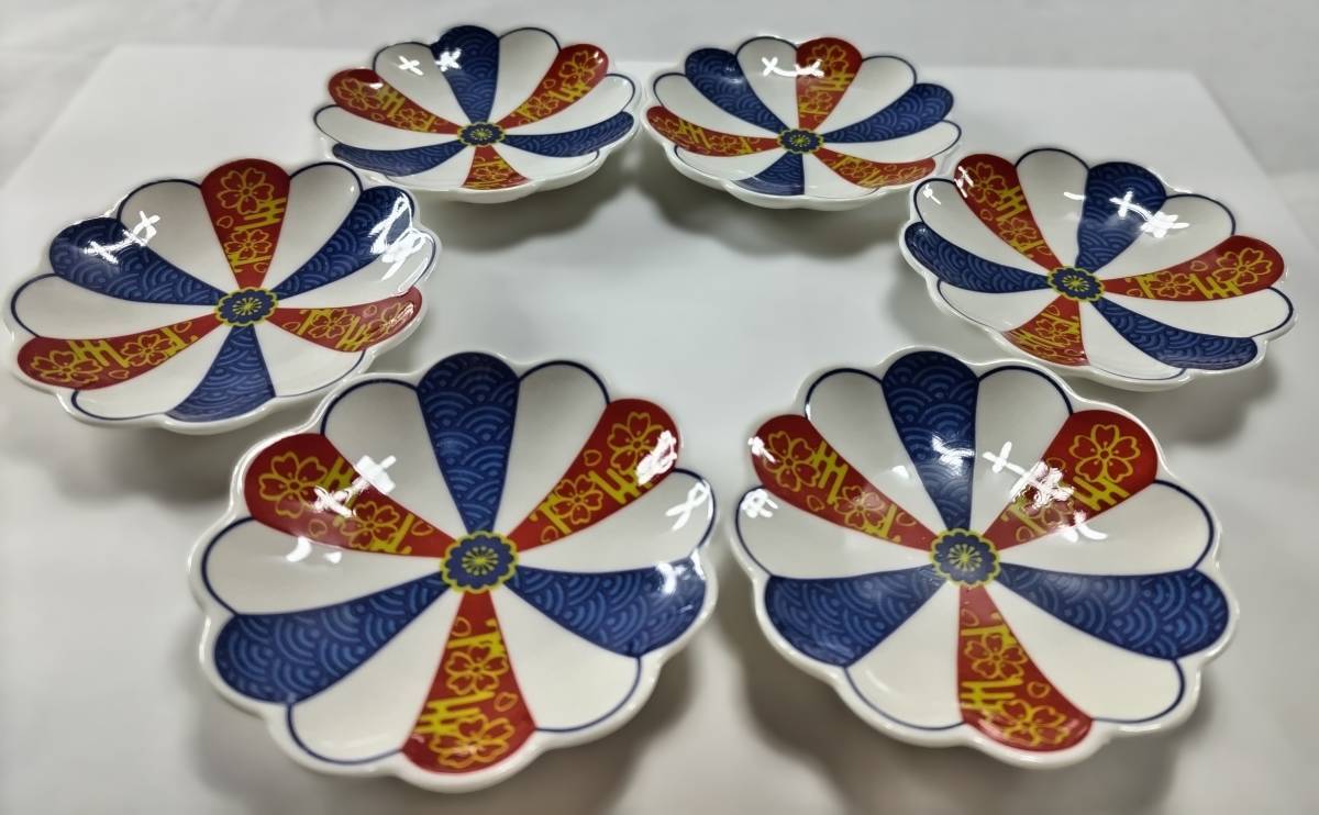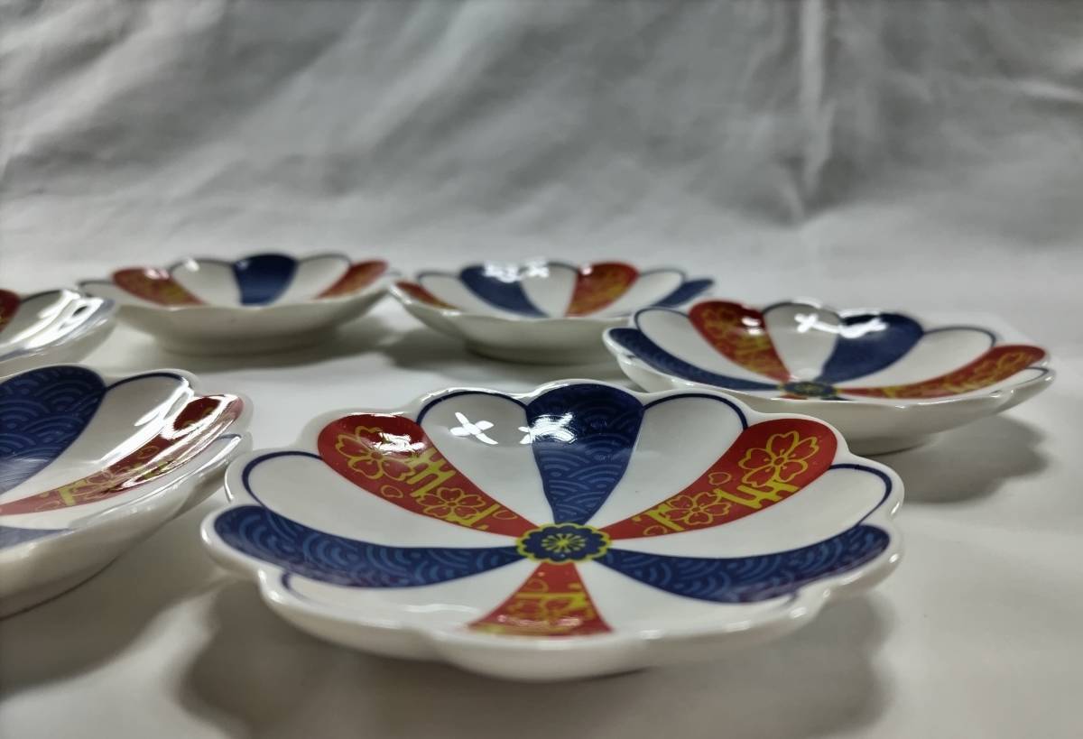 拂龜【美品】豆皿 6枚セット 小皿 醤油皿 銘々皿 食器 和風 レトロ 日本 陶器 焼き物 皿 彩り こどもの日 節句 縁起物 行事 カラフル 青 赤