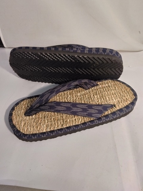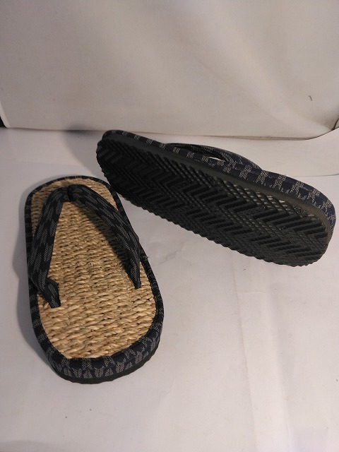 LL(26cm)男 草履 雪駄 七島い草使用 国東半島 七島イ草 草履ぞうり 男性用 足の疲れ対策に 凸凹感! 雪駄 柄入りネーヴィ色