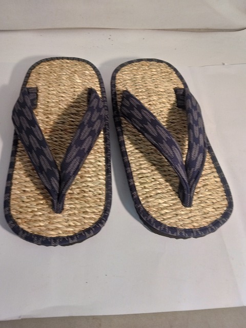 国内では唯一、大分県の国東半島でしか生産されていません。 七島イ草履は、イ草で縄を編み、それを草履に仕上げています。