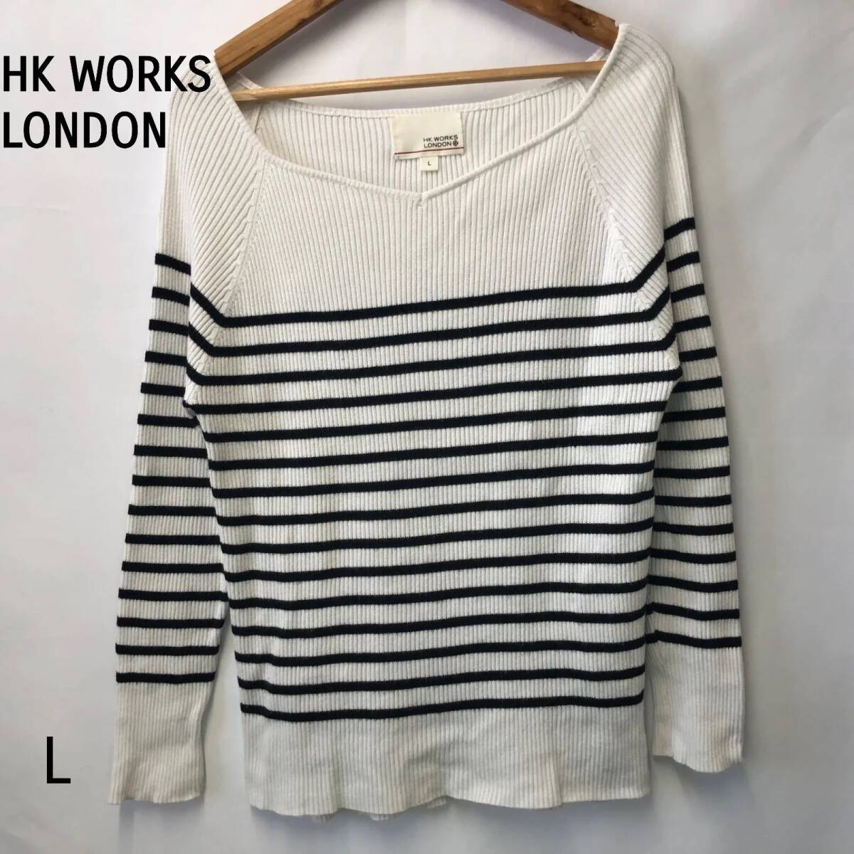HK WORKS LONDON エイチケーワークスロンドン レディース トップス ニット 白 黒 ボーダー Lサイズ