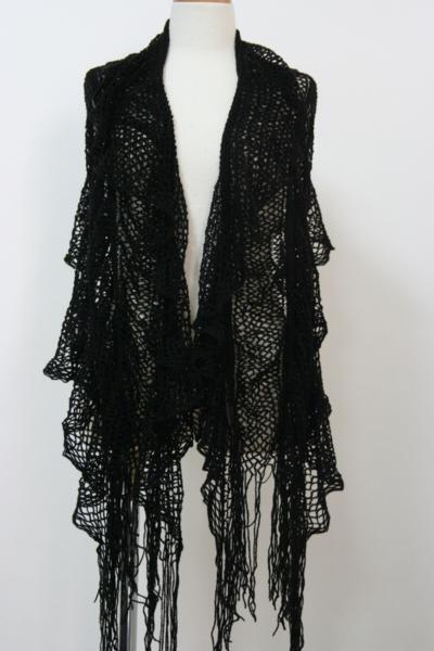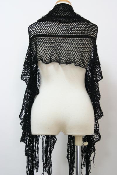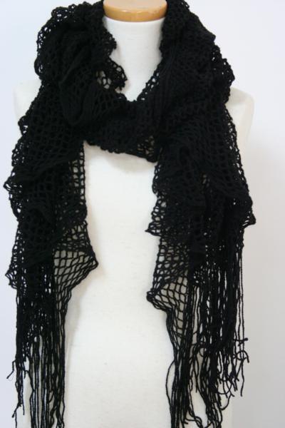 送料無料◆手編み風◆かぎ編み◆ショールマフラー(ブラック)