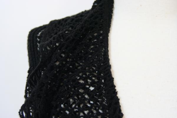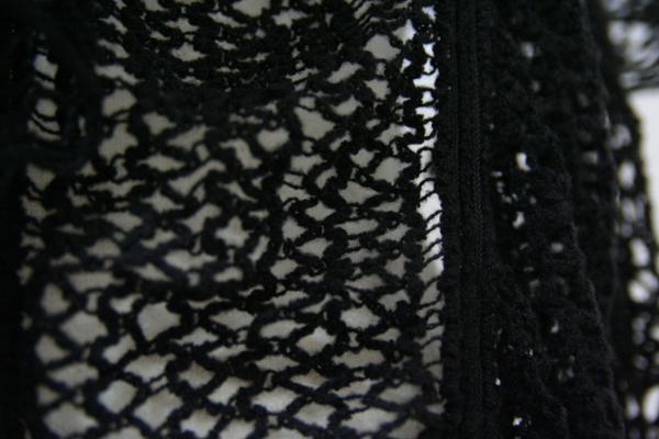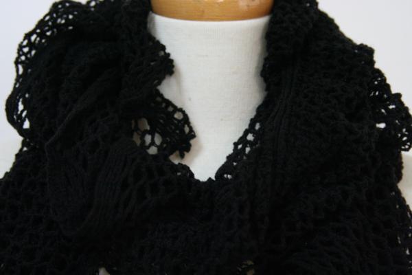 ・アウターに合わせやすい無地ブラックのかぎ編みショールマフラーです。