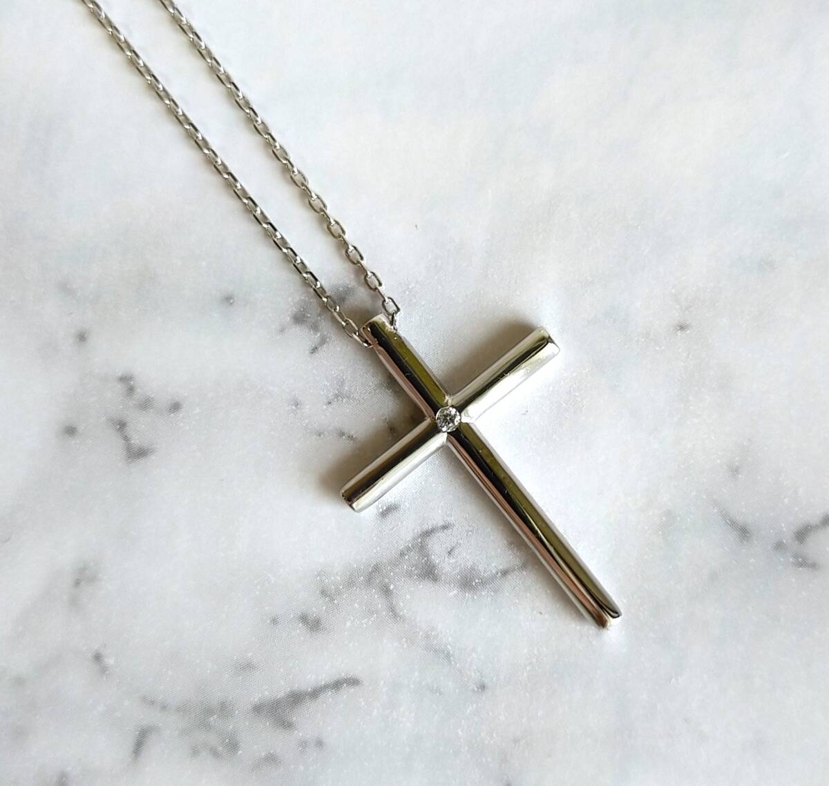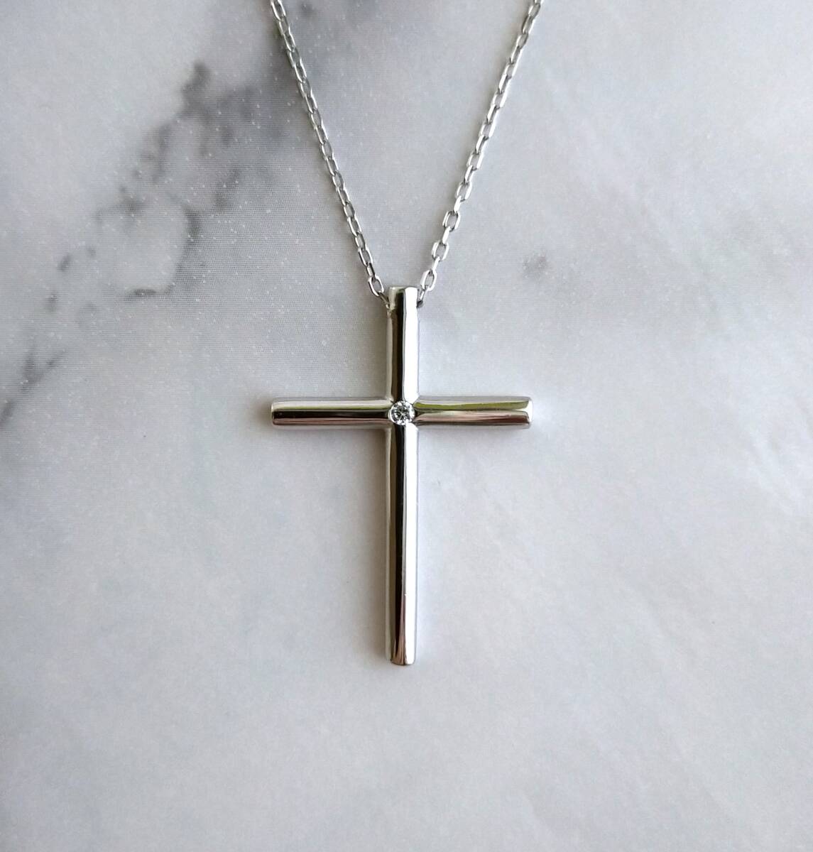クロス ネックレス シルバー925 ペンダント CZジルコニア 銀 十字架 シンプル