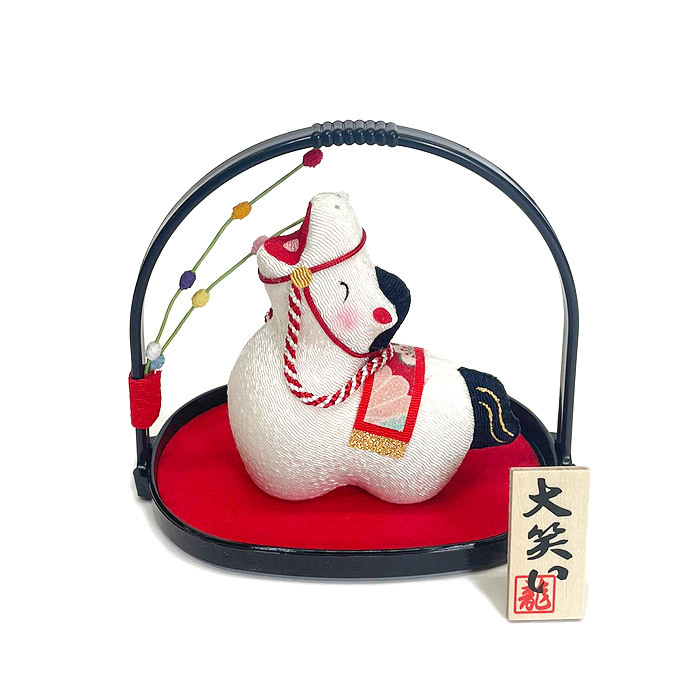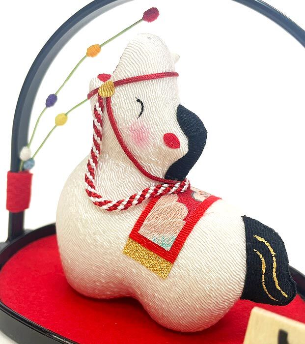 迎春飾り かご入り大笑い午 2026年午年干支飾り 午歳ちりめん飾り 丙午(ひのえ・うま)歳 干支置物 正月飾り 開運 魔除け
