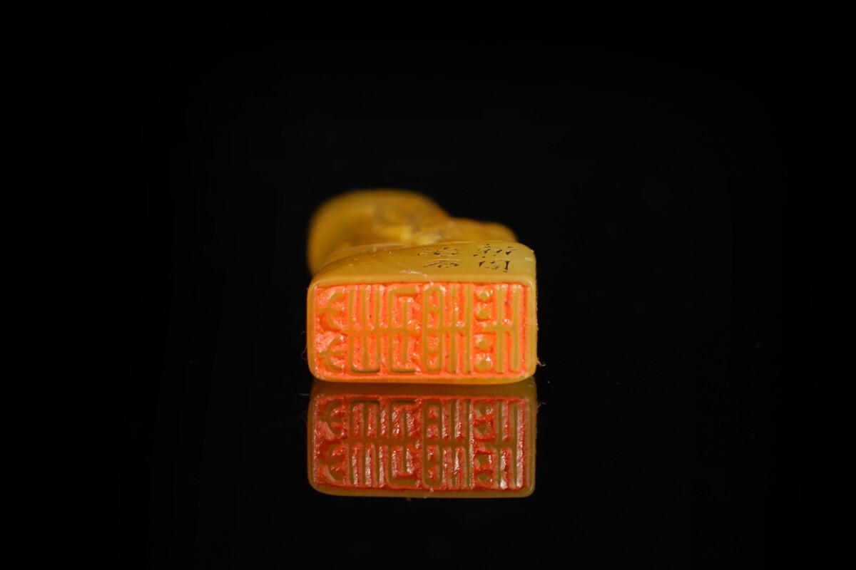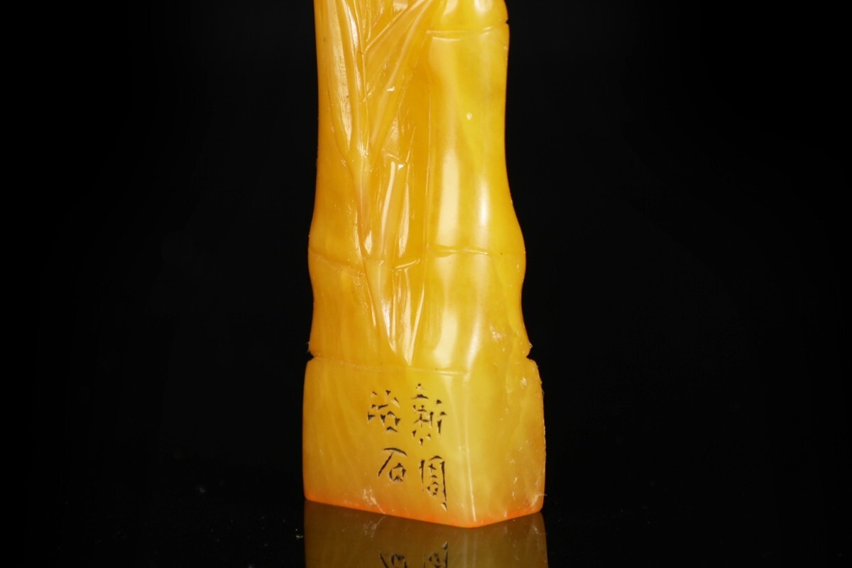 「清 新周治石 老寿山石 田黄石彫り 節節高 印章」極細工 擺件 古賞物 中国古美術 旧蔵出