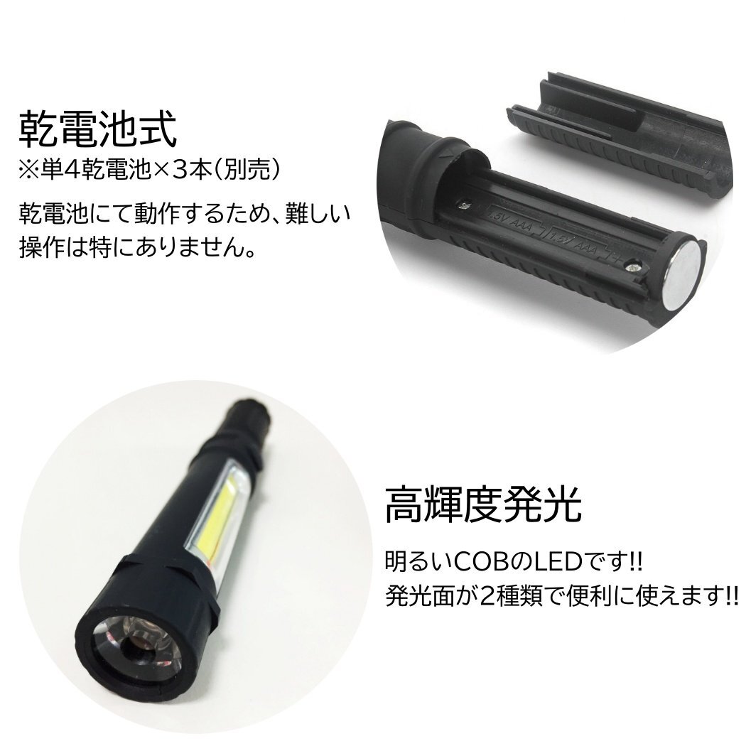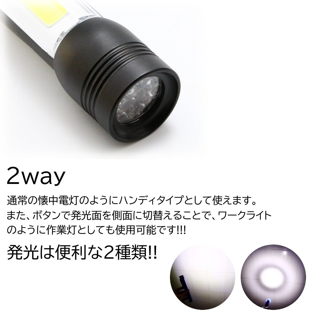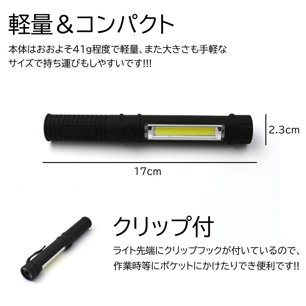 明るい LEDライト 電池式 ハンドライト LED 強力 ハンディライト LED作業灯 ワークライト 懐中電灯 COB マグネット 照明 磁石 クリップ コ