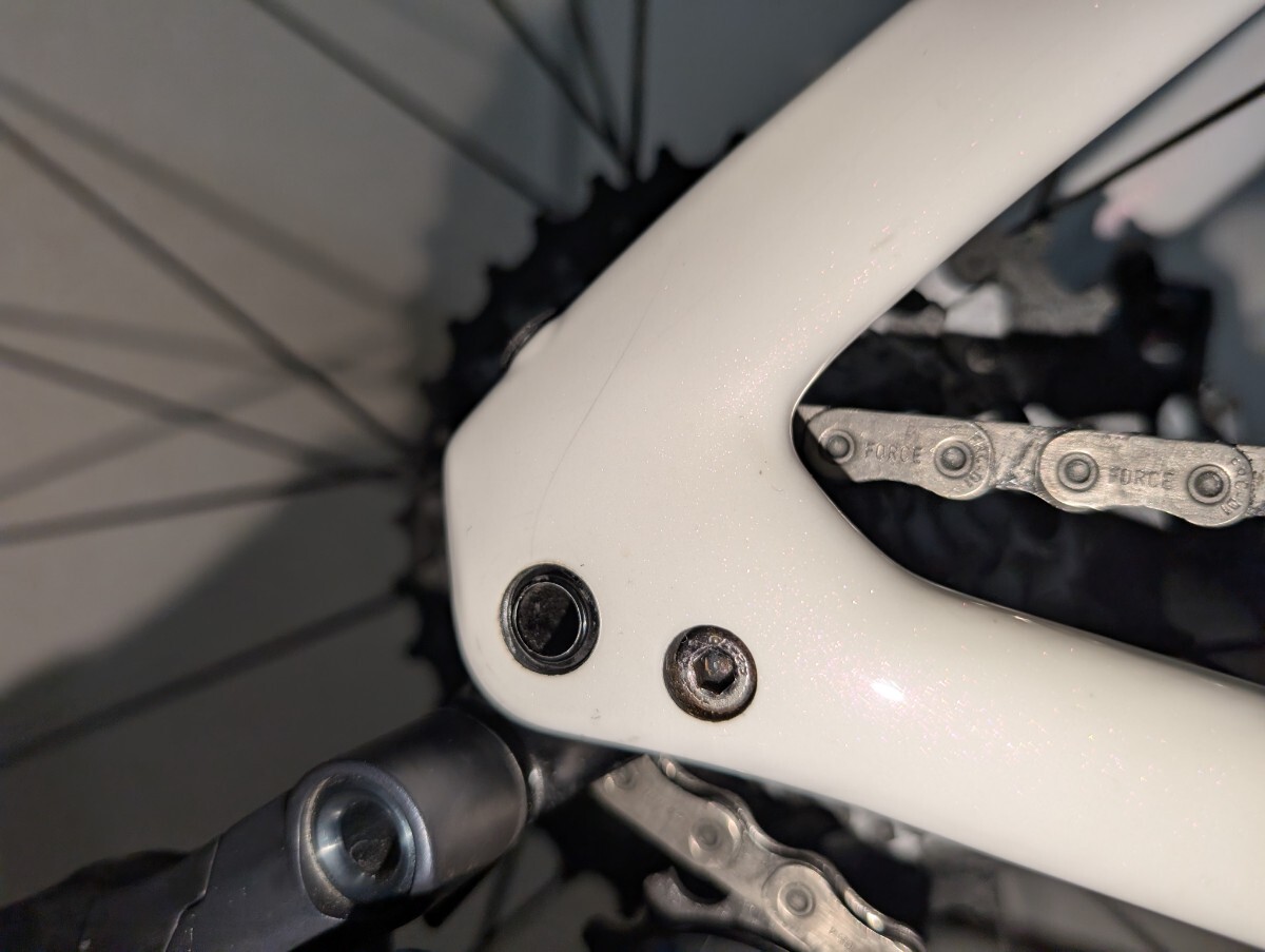 レバー、RDにタッチアップの跡があり、フレーム本体にクリア塗装面のみのクラック(写真2枚目)があります。