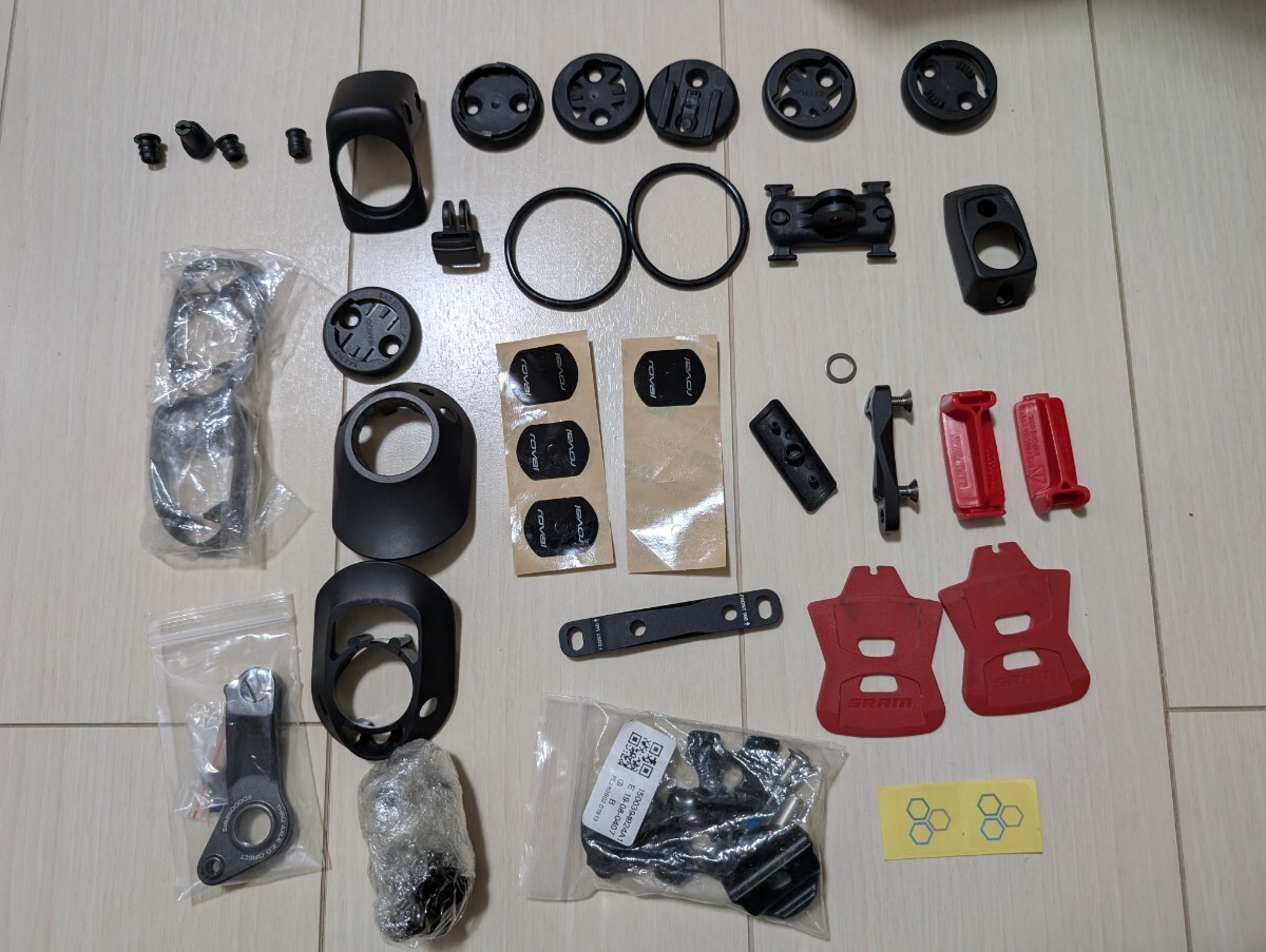 サドル固定用のヤグラ(カーボンレール用とスチールレール用の両方)と予備の社外品ディレイラーハンガーお付けします。