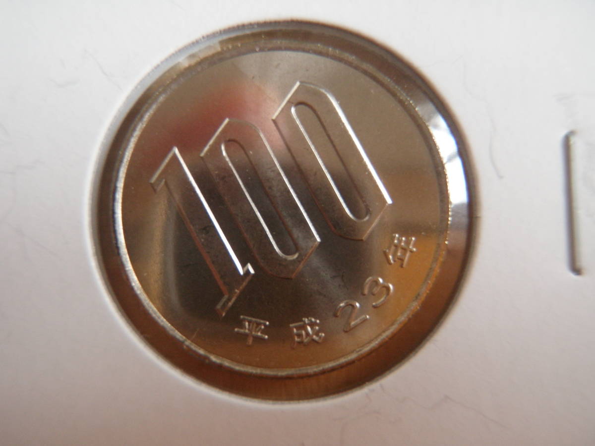 ロール出し 指紋無し 百円白銅貨 平成23年 貨幣 100円 新品 未使用 即決