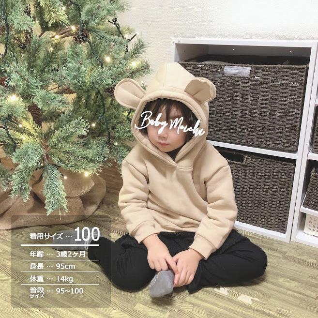 90サイズ|100サイズ|1歳|2歳|3歳|4歳|長袖スウェット|フリース|上着|アウター|クマ耳|うさ耳|ウサ耳
