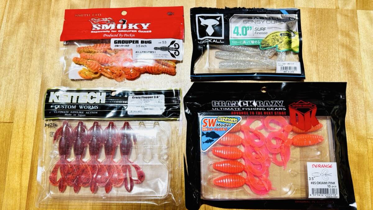 ロックフィッシュワーム ディレンジクレイジーフラッパーなど4点セット