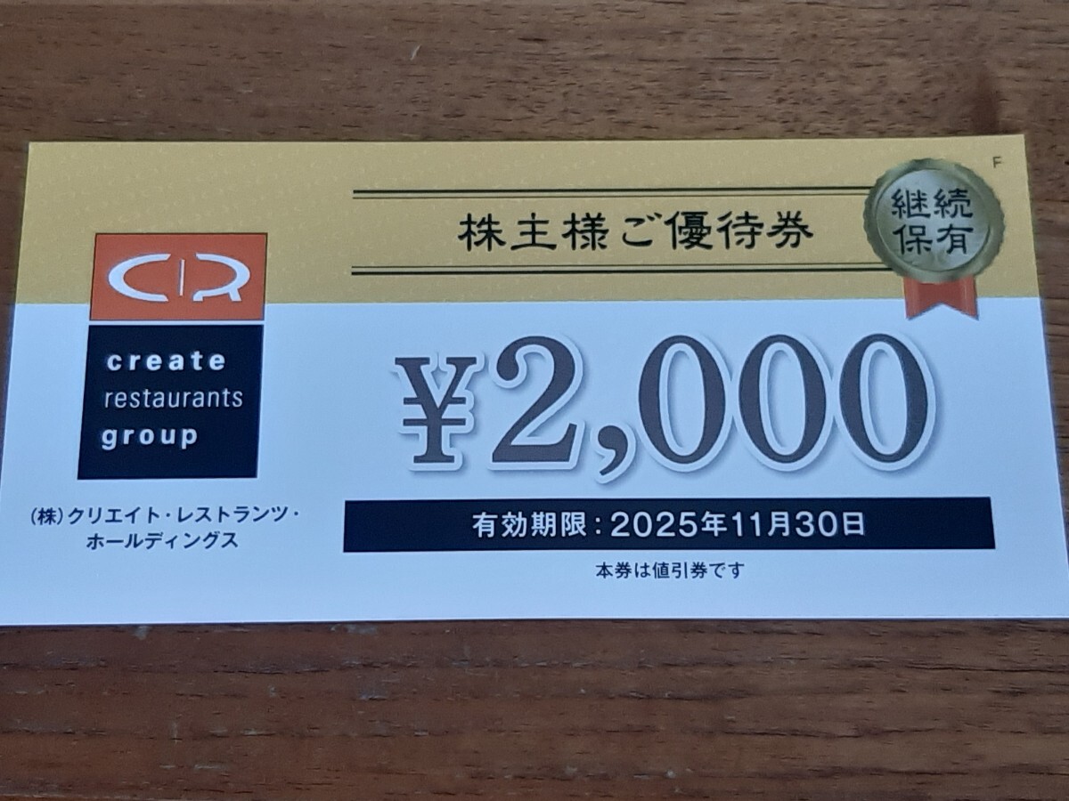 【ナビ通知】 クリエイトレストランツ 株主優待 2000円分 クリレス