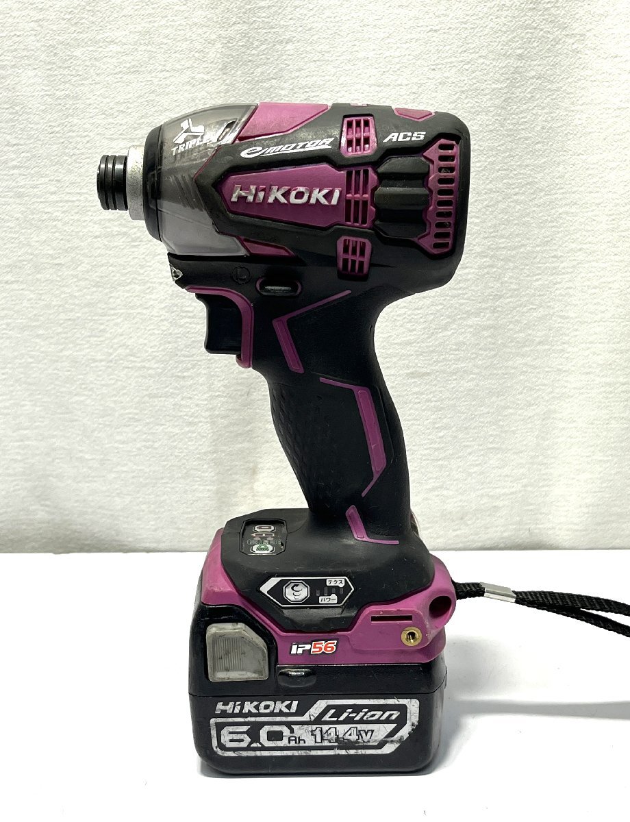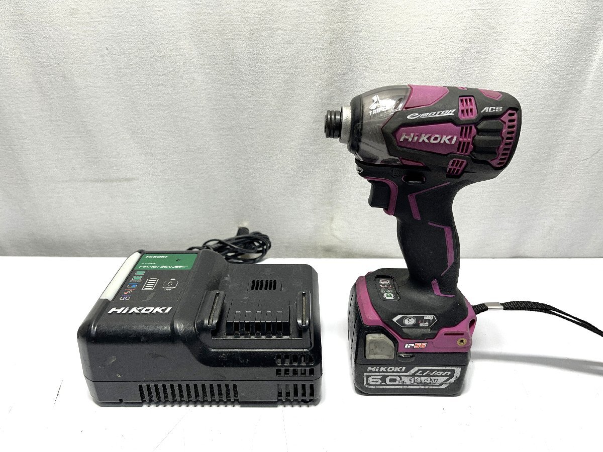 ▽HiKOKI ハイコーキ コードレスインパクトドライバ DC14.4V 6.0Ah 蓄電池×1個 充電器付き 中古・簡単な動作確認のみ▽012283