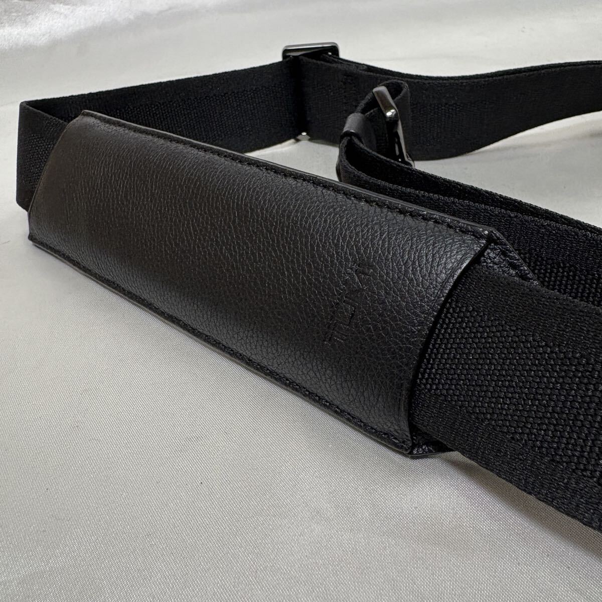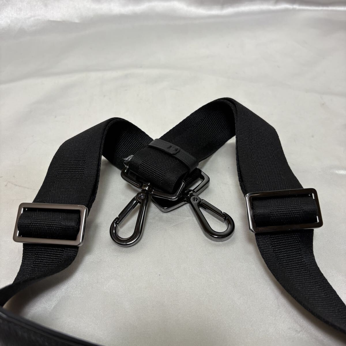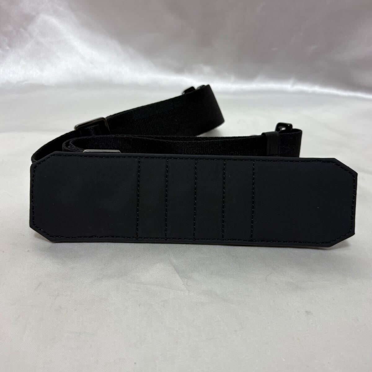 ブラックレザーのパッドとブラッククロームカラー取付金具部分との配色がカッコいいショルダーベルトです。