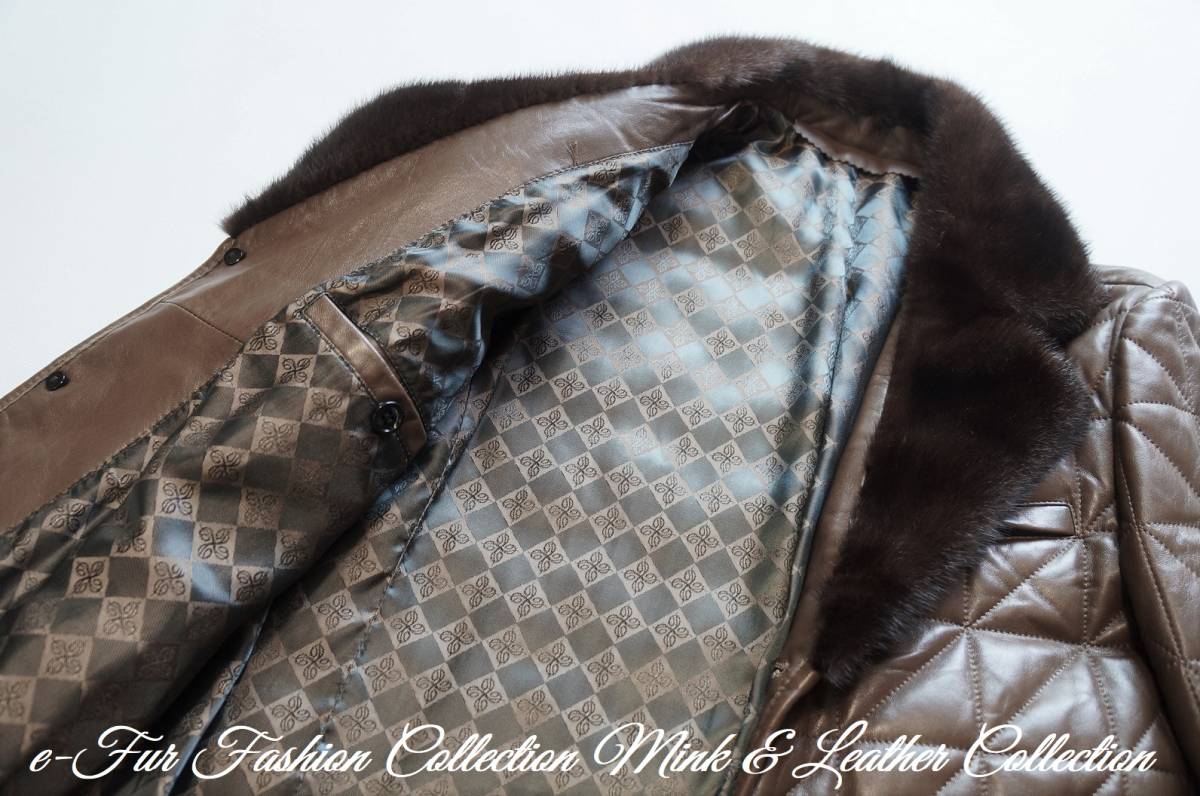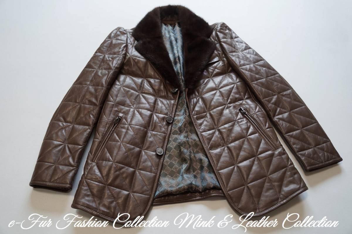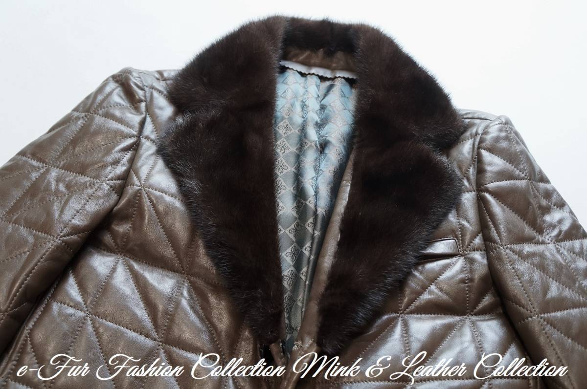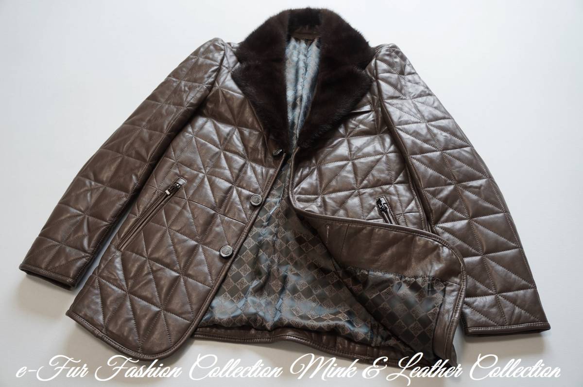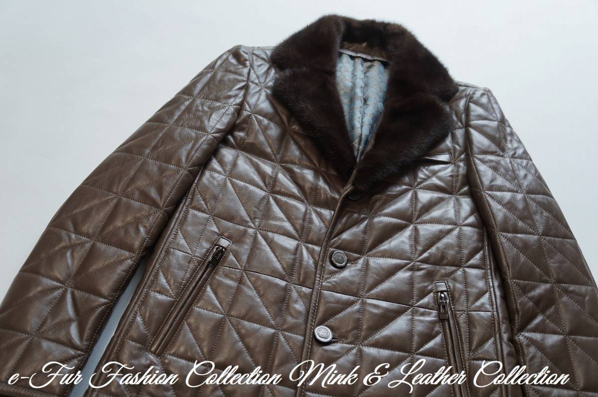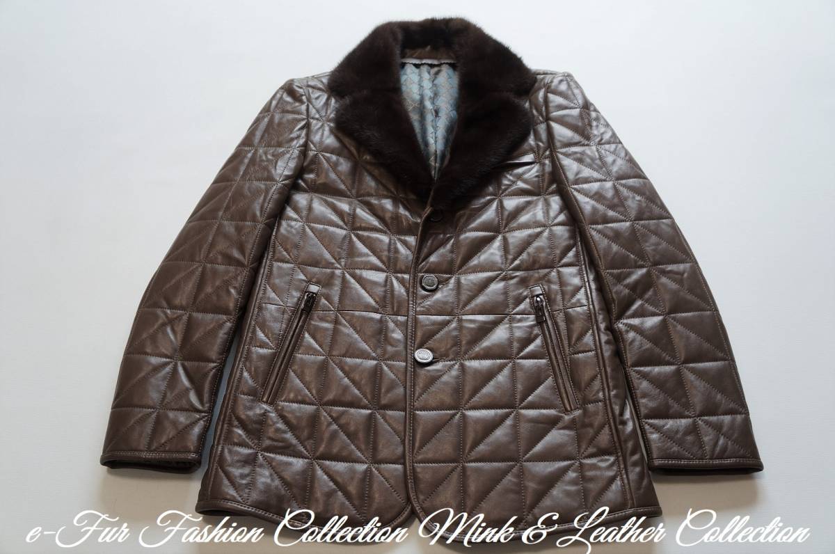 強さと色気を併せ持つ☆デミバフミンクファー襟×ベビーラム 羊革本革キルティング 中綿 レザーテーラードジャケットM メンズ 毛皮コート