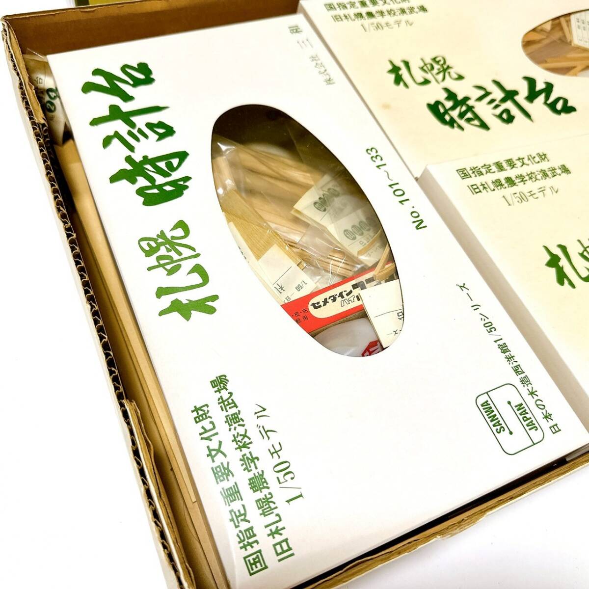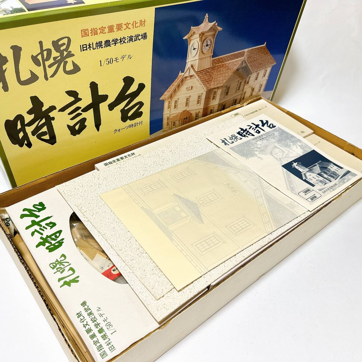 激レア 希少品 未使用 未組立 1/50 札幌時計台 旧札幌農学校演武場 日本の木造西洋館 木製模型 三和 入手困難 クォーツ時計付き | |||