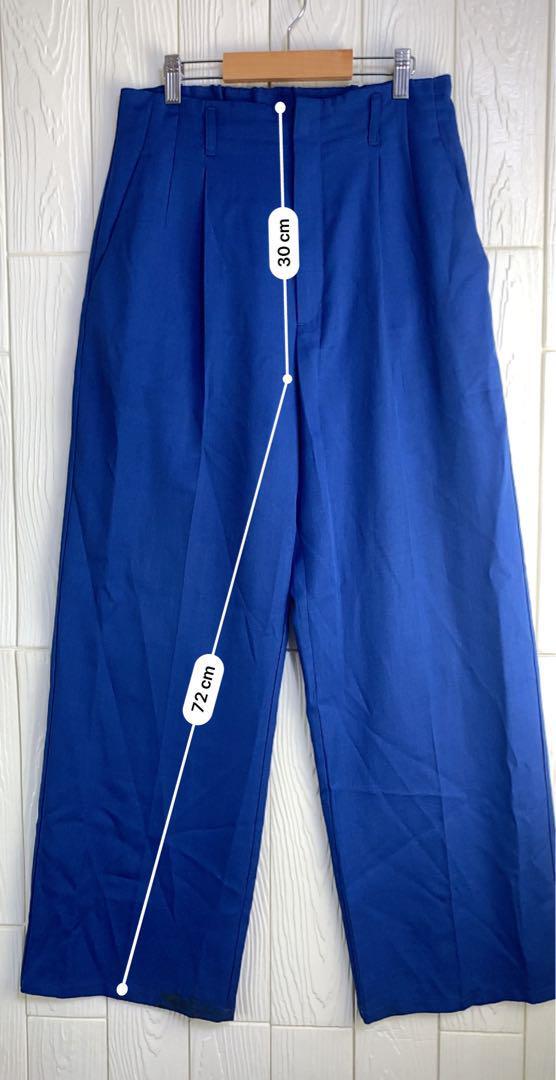 鮮やかな青のワイドパンツ、快適な着心地とスタイリッシュなデザイン。