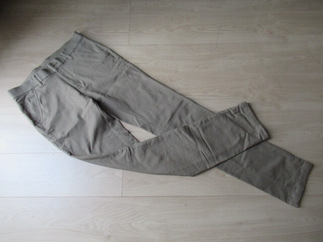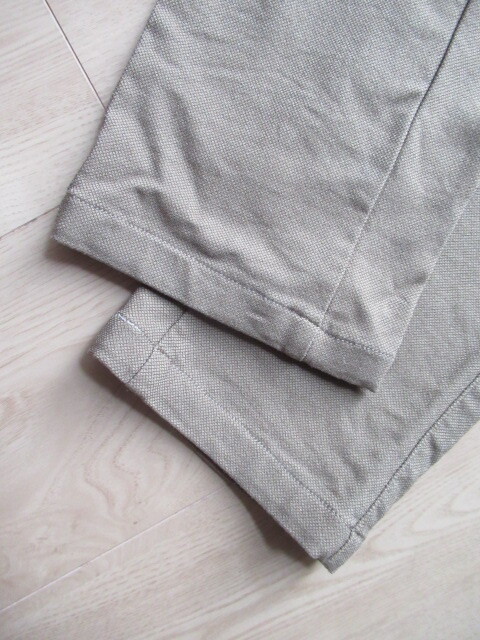 伸縮性のあるスラックスで、裾は細めのスリムタイプ。