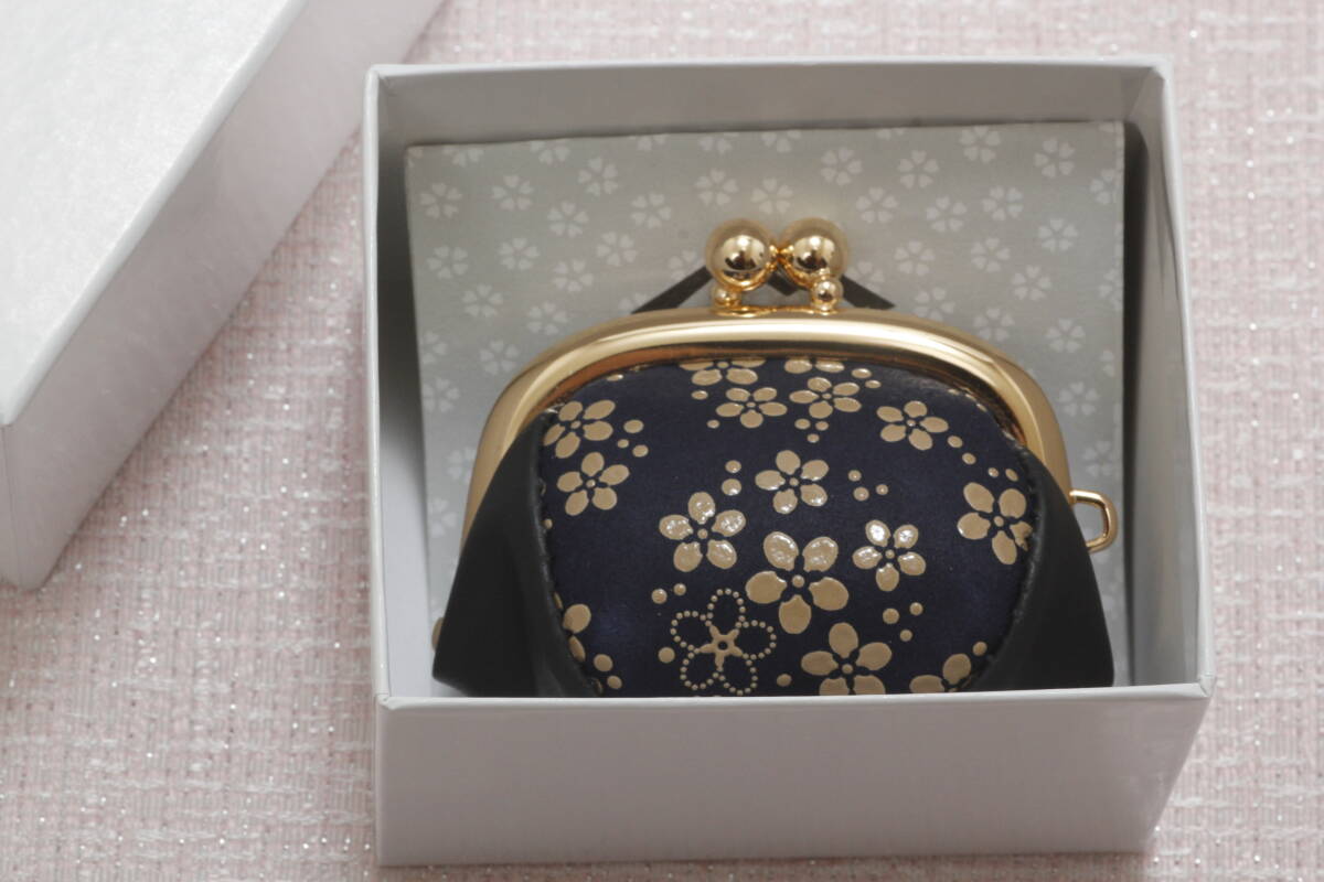 ☆新品・未使用☆ 甲州印伝 印傳屋 50H小銭入 No.1114 忘れな草柄 紺×白