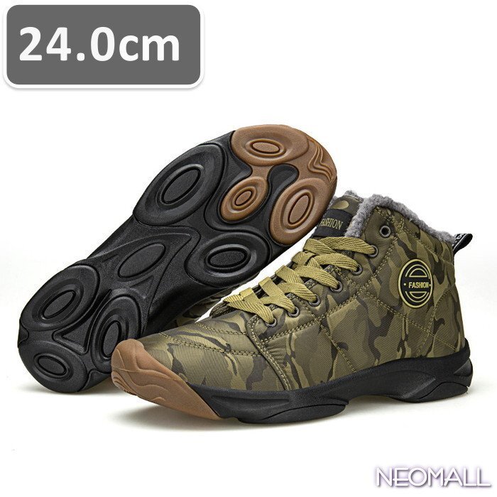 メンズ スノーシューズ 【864】 24.0cm 迷彩グリーン ムートンブーツ スニーカー ウィンターブーツ 裏起毛 防水 防寒 防滑 冬用靴 綿靴