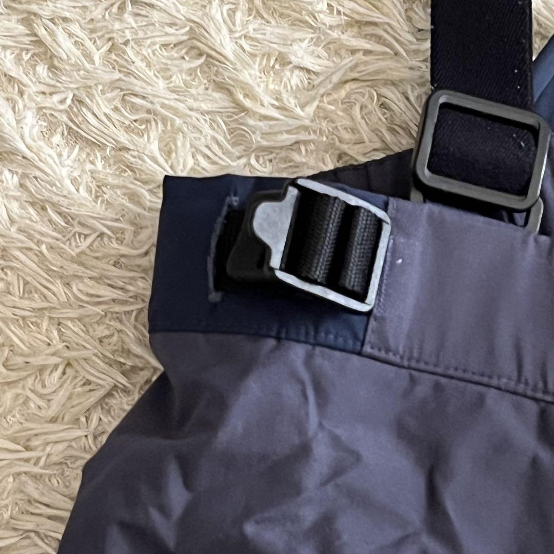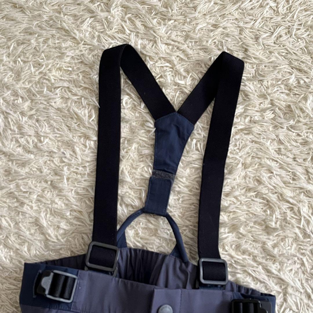 キッズのスノースポーツ用ジャケットやパーカと上下つなげられるシステムを備え、雪の侵入を防ぎます。
