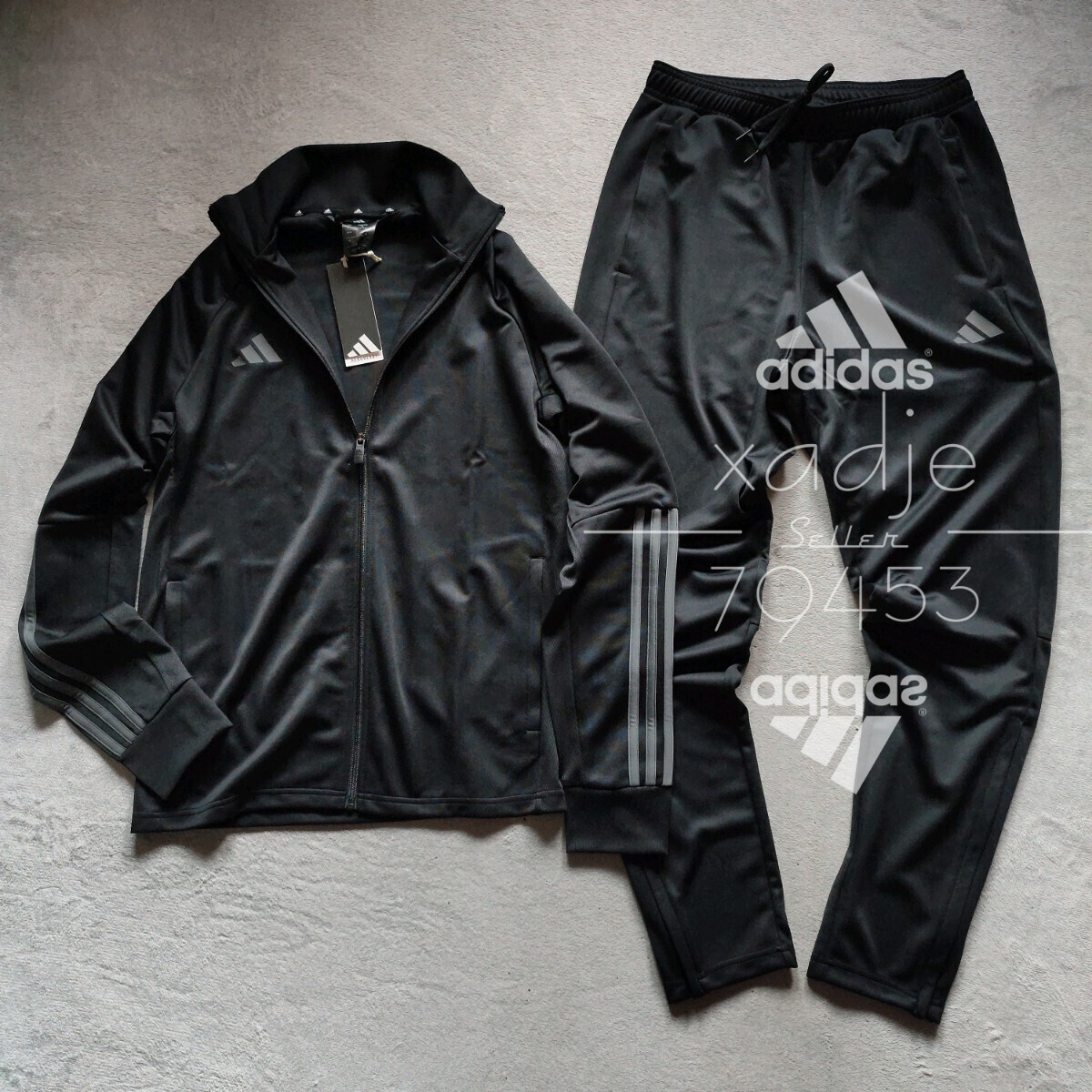 新品 正規品 adidas アディダス 上下セット セットアップ ジャージ 黒 ブラック グレー 新作 ファスナー付き 定価8250円 XL