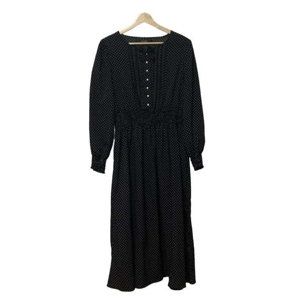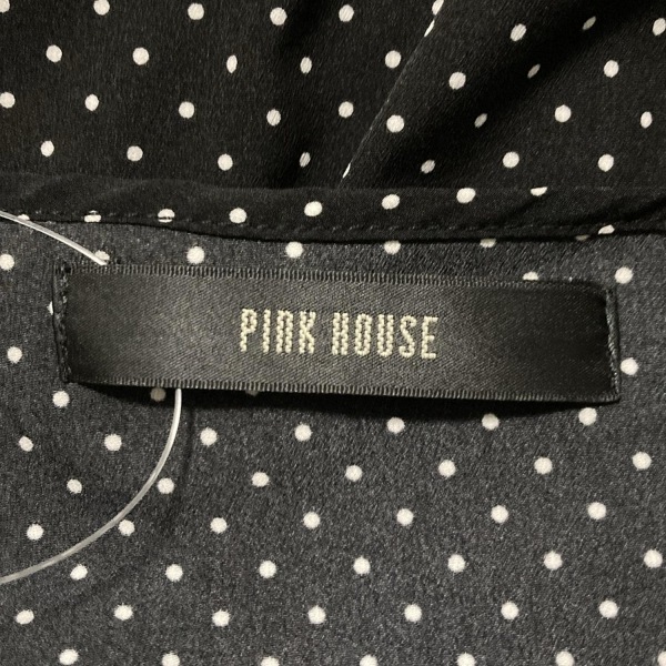 ピンクハウス PINK HOUSE - 黒×白 レディース 長袖/ロング/ドット柄/パール/リボン 新品同様 ワンピース