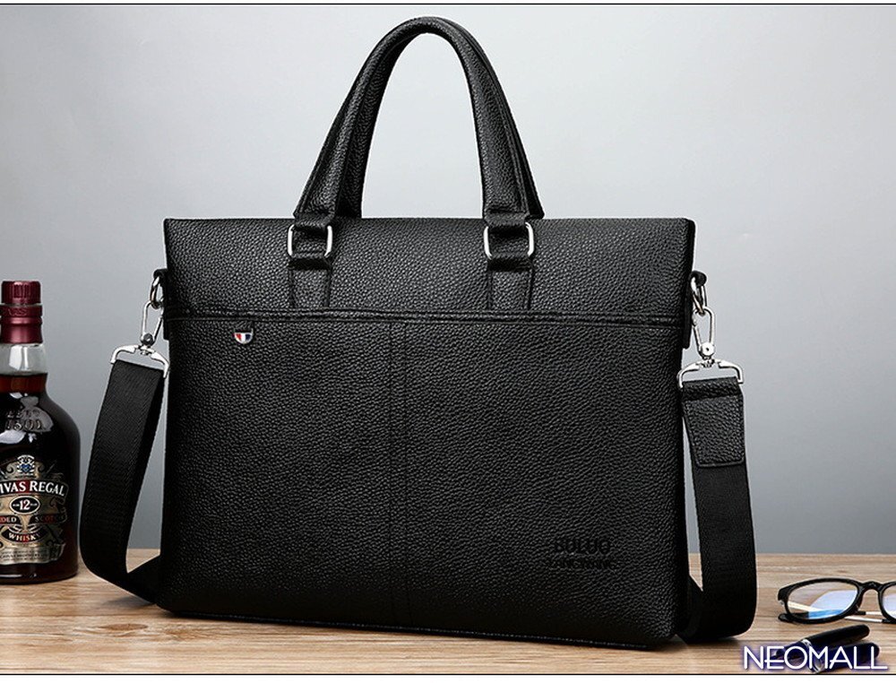 人気☆ 新品 メンズ 高級PUレザー ビジネスバッグ【607】ブラック ブリーフケース ショルダー スクエア 横型 大人気 質感◎