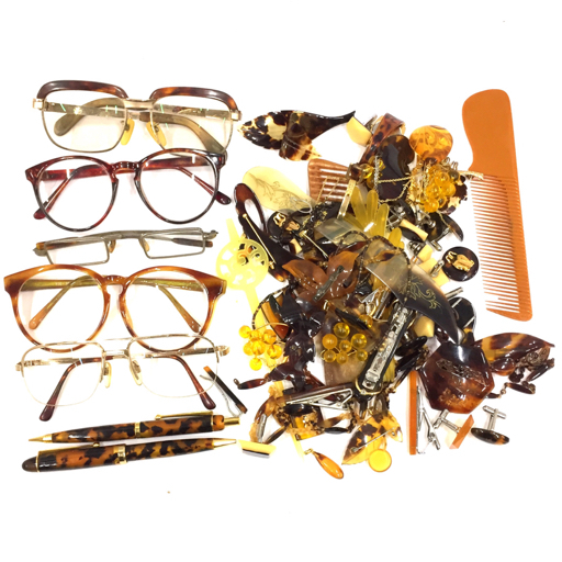 鼈甲 べっ甲 ネックレス 他 べっ甲風 含む アクセサリー メガネ 眼鏡 まとめ セット 総重量約0.5kg |